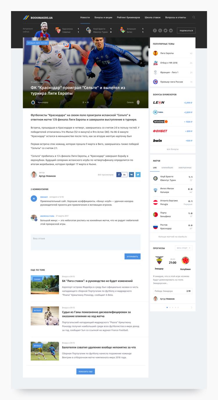 We built a fully responsive and user-friendly homepage with features and tools for following sport events, result predictions, offers and promotions from bookmakers.
