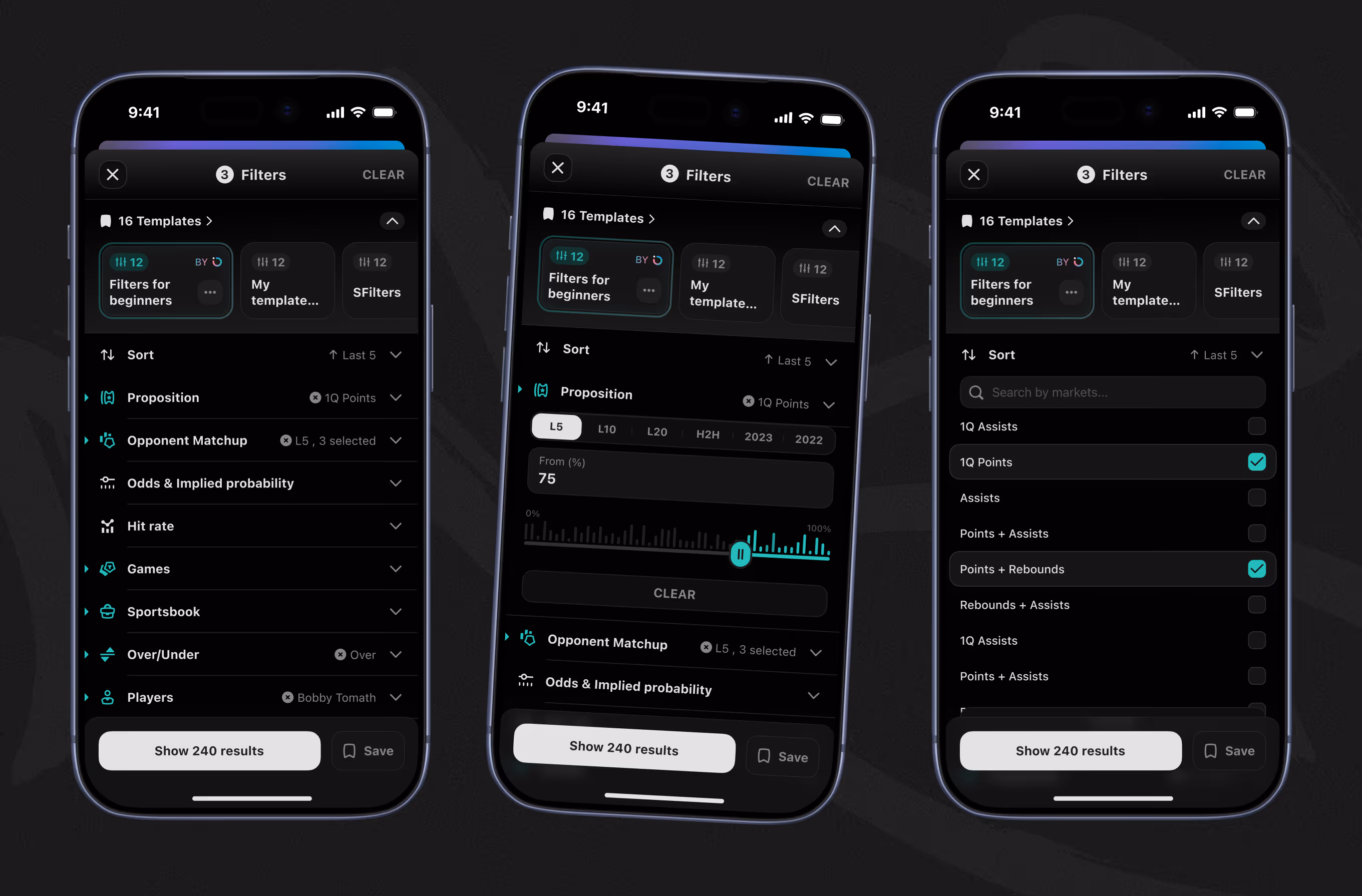 PLAYER → Props & Player Props Filters