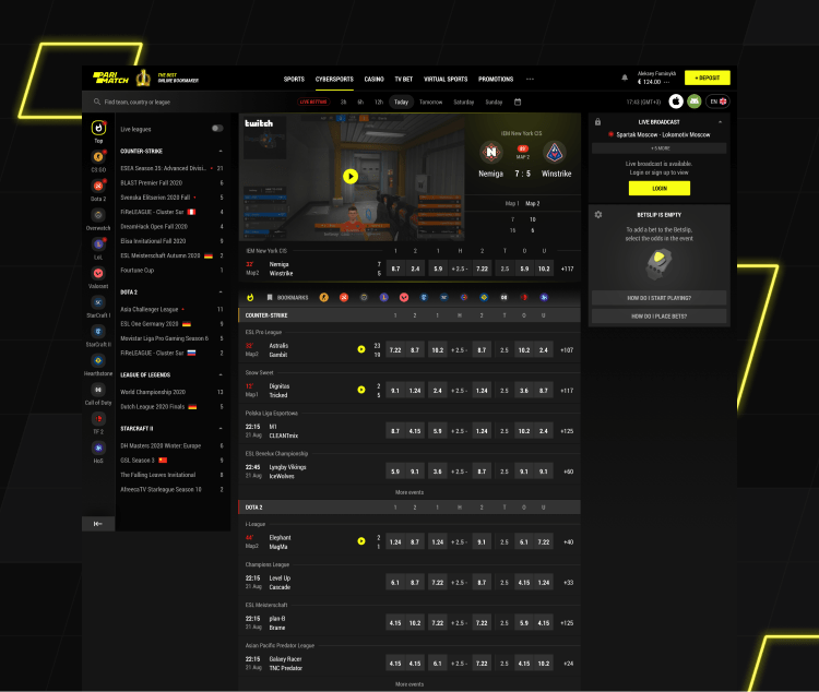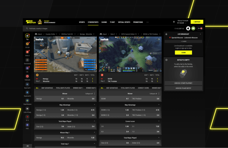 Similarly to other sports, users tend to bet simultaneously on live events, but in this case, they often need to follow both games’ livestream. Thus streaming multiple events and allowing betting on them at the same time helps Parimatch beat even Twitch.