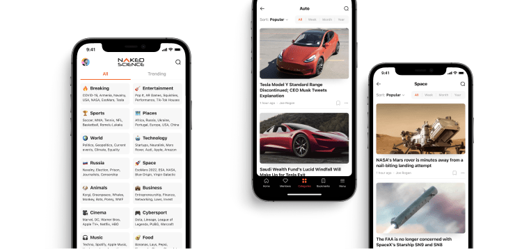 Considering the amount of topics Naked Science covers, we’ve dedicated a special section for categories with content previews. The key idea is to allow users to find quickly what really interests them.