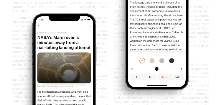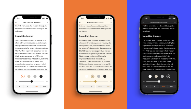 For a media app the readability of articles remains the most important aspect. How to make it work for everyone? Keep it simple, minimalistic and at the same time allow the perfect personalisation.