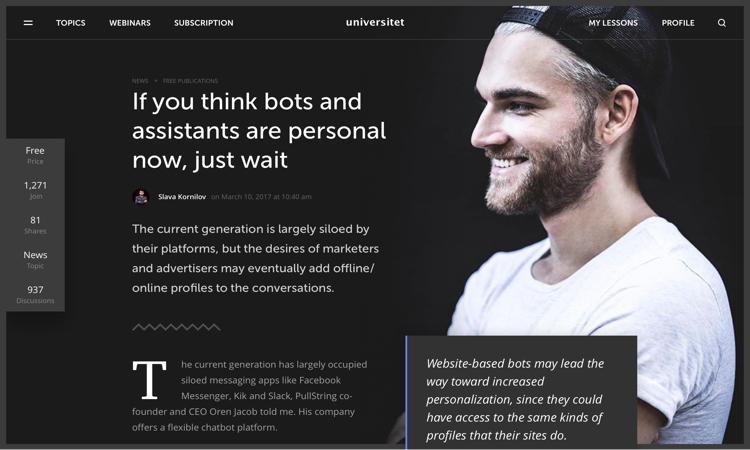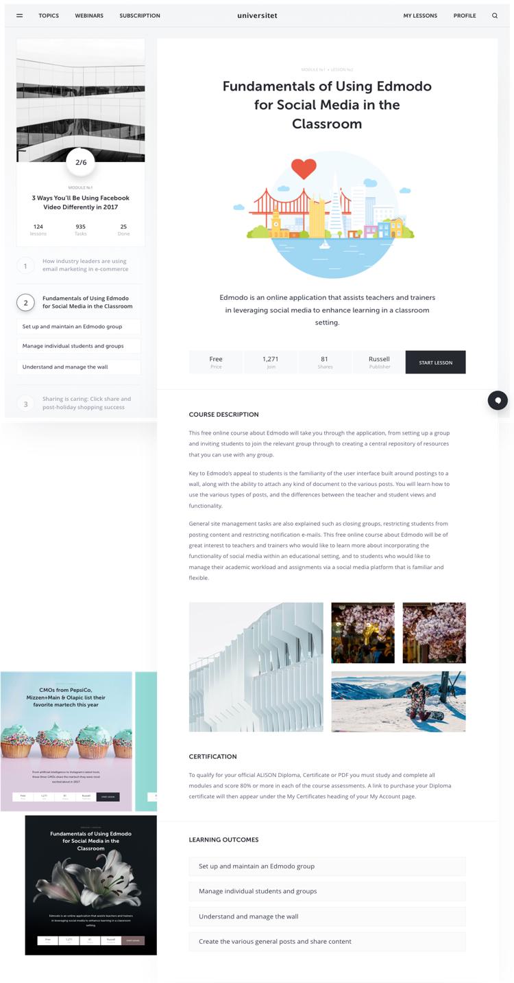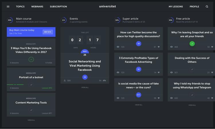 Universitet is a new e-learning platform in the educational sphere centered on knowledge acquisition that allows users to receive online educational lectures.