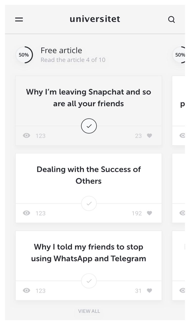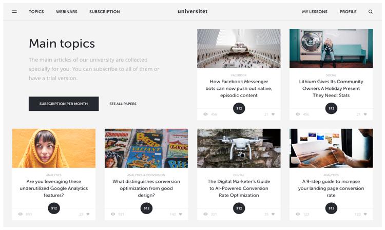 We designed the Topics page so that it displays an concise overview of the articles that you can access before deciding to click on the thumbnail and start reading. In addition you get access to a subscription of paid topics on various subjects of the courses.