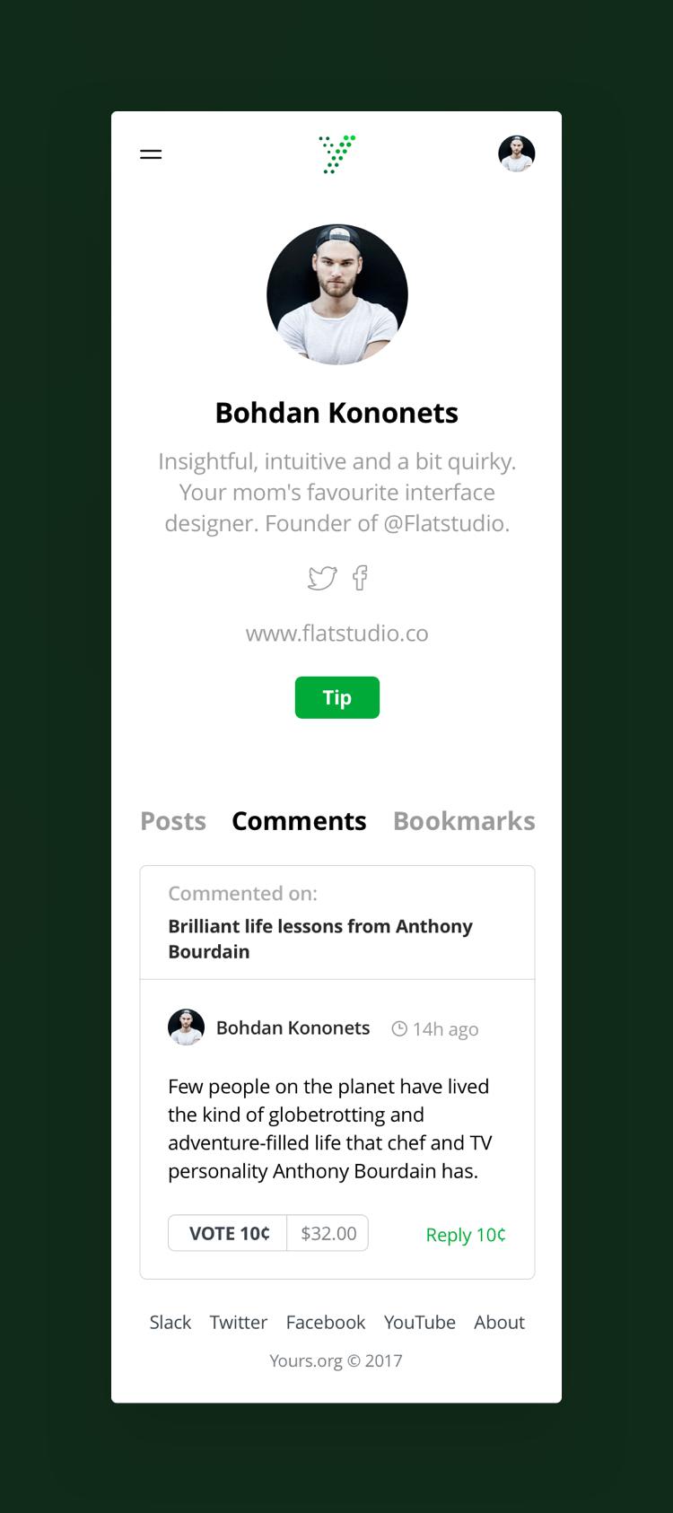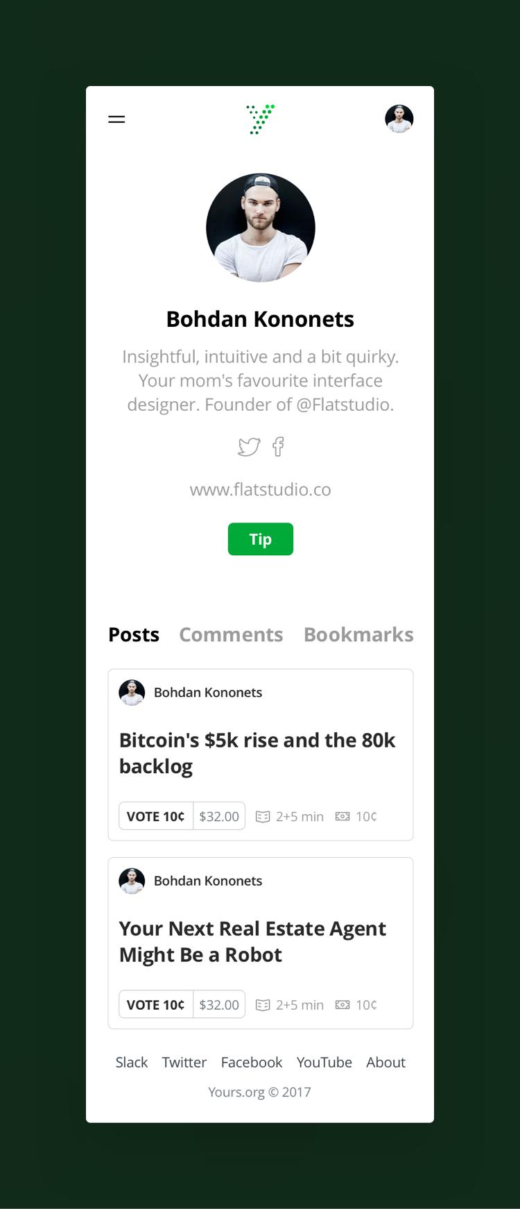 Yours is a social network designed to provide incentives for authors and other internet users for their contents, discoveries, comments and tips via payment in the digital currency — Bitcoins.