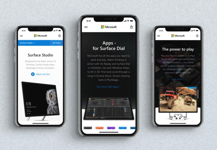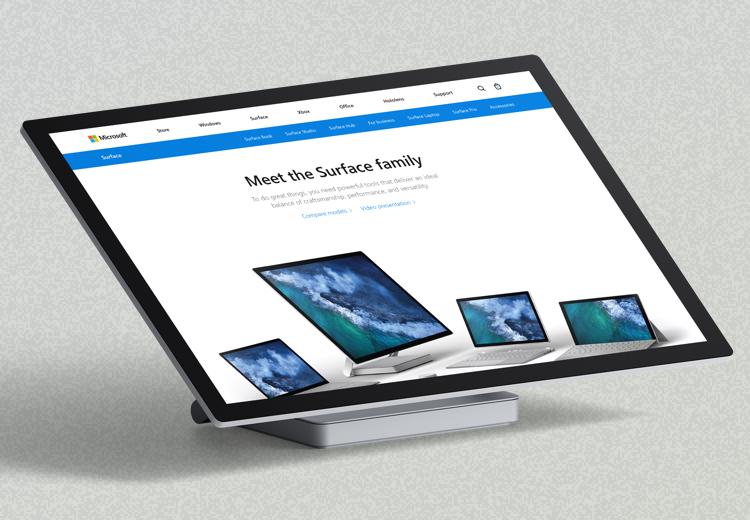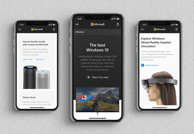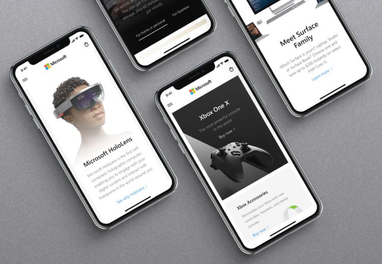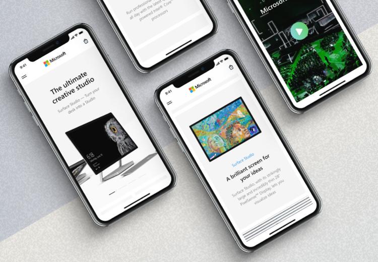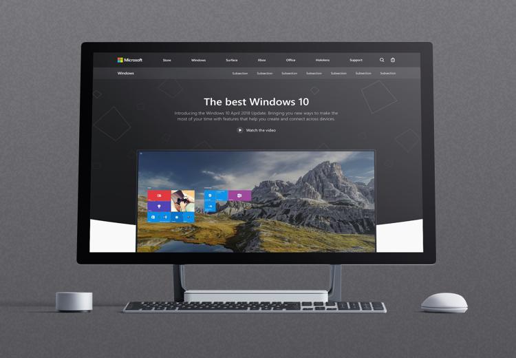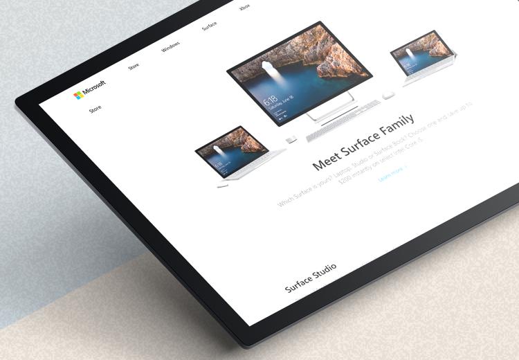 The concept of the Microsoft website redesign was developed as a tribute to both the Fluent design system and the famous IT company itself.