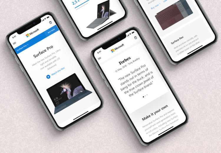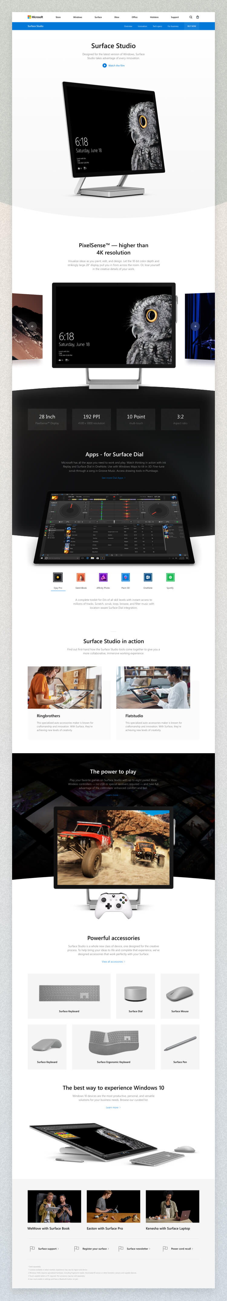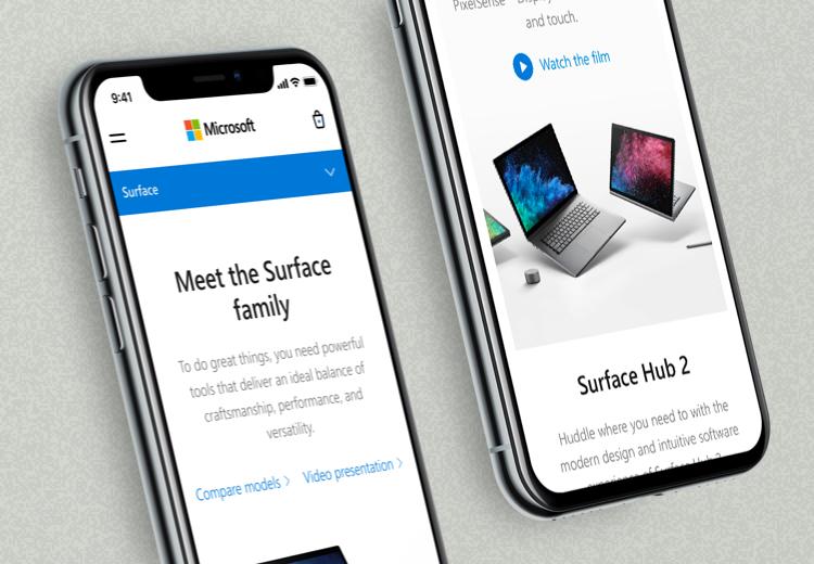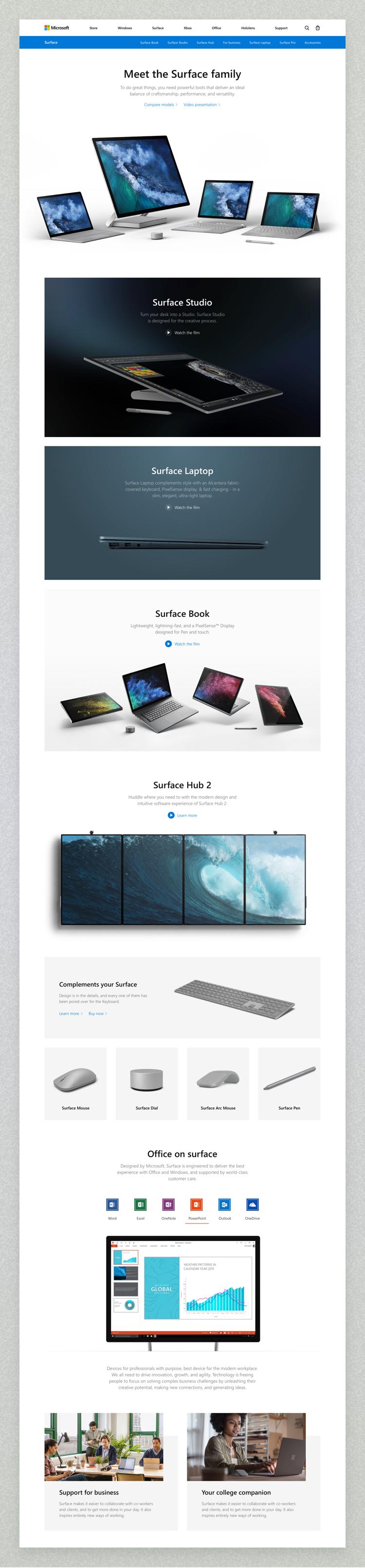 A special page was created to highlight the Microsoft’s most stylish series of devices. The design was meant to be minimalistic enough to accentuate every single product and accessory so for each one of them a separate block was developed.