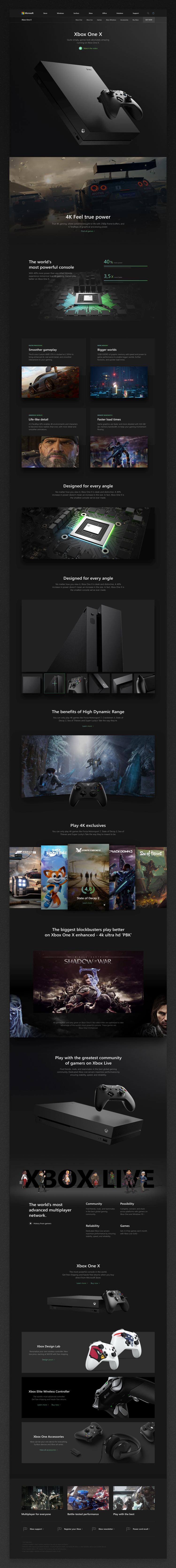 Futuristic and hi-tech products always have much info to be shown and explained. Xbox One X page is not only fancy and attractive but also instructive giving the user the whole overview of its features, related games and additional gadgets.