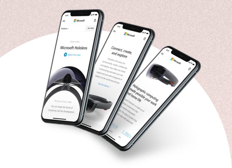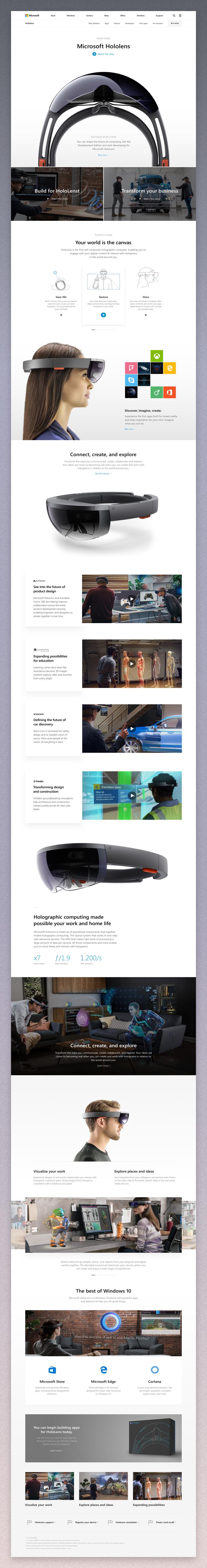 Fresh devices require innovative home pages to be presented on. The HoloLens product is new for customers so besides of pointing out its features the landing is a guidance to how it works and which user’s need it may serve.