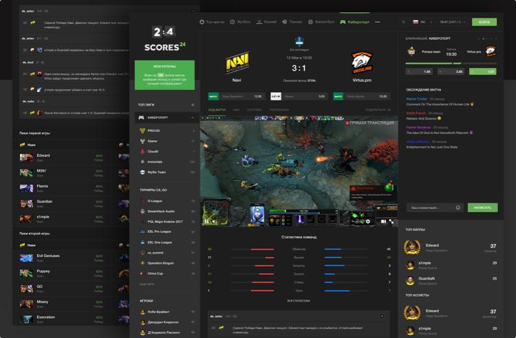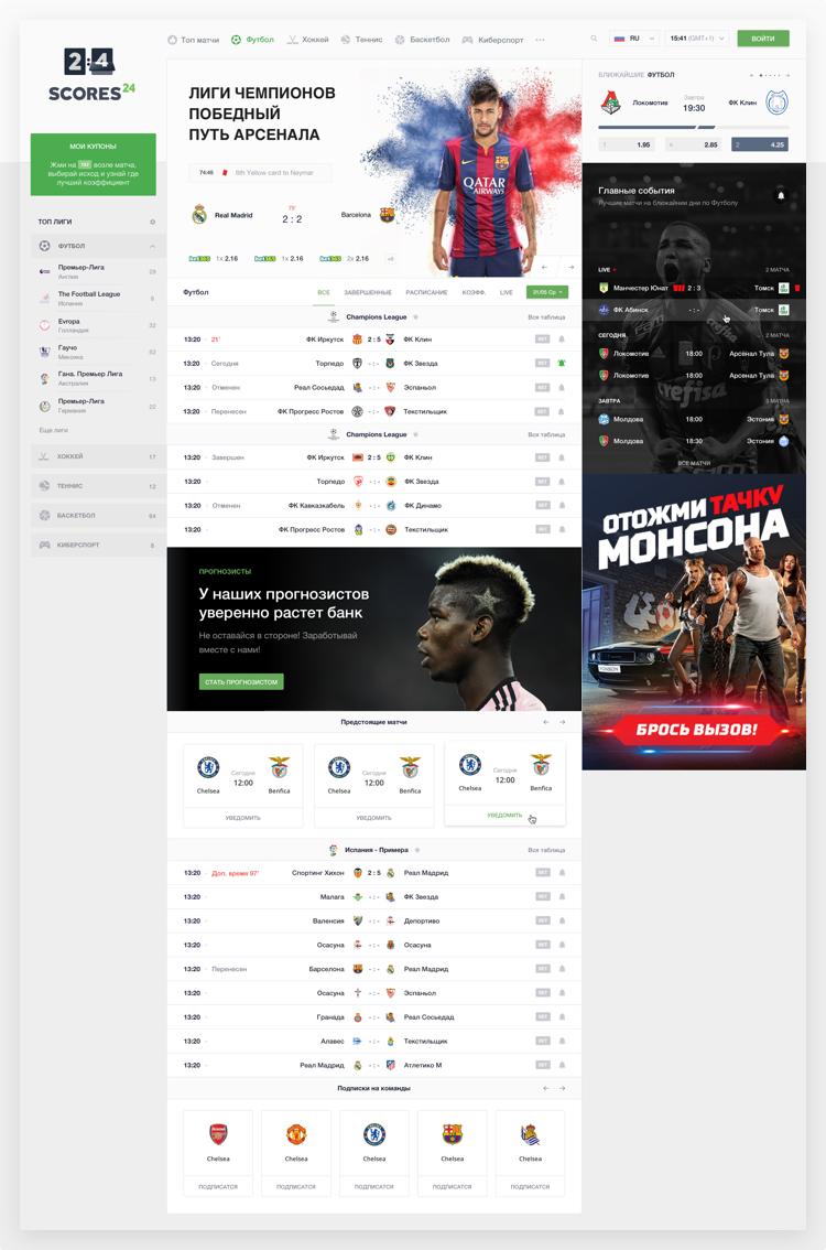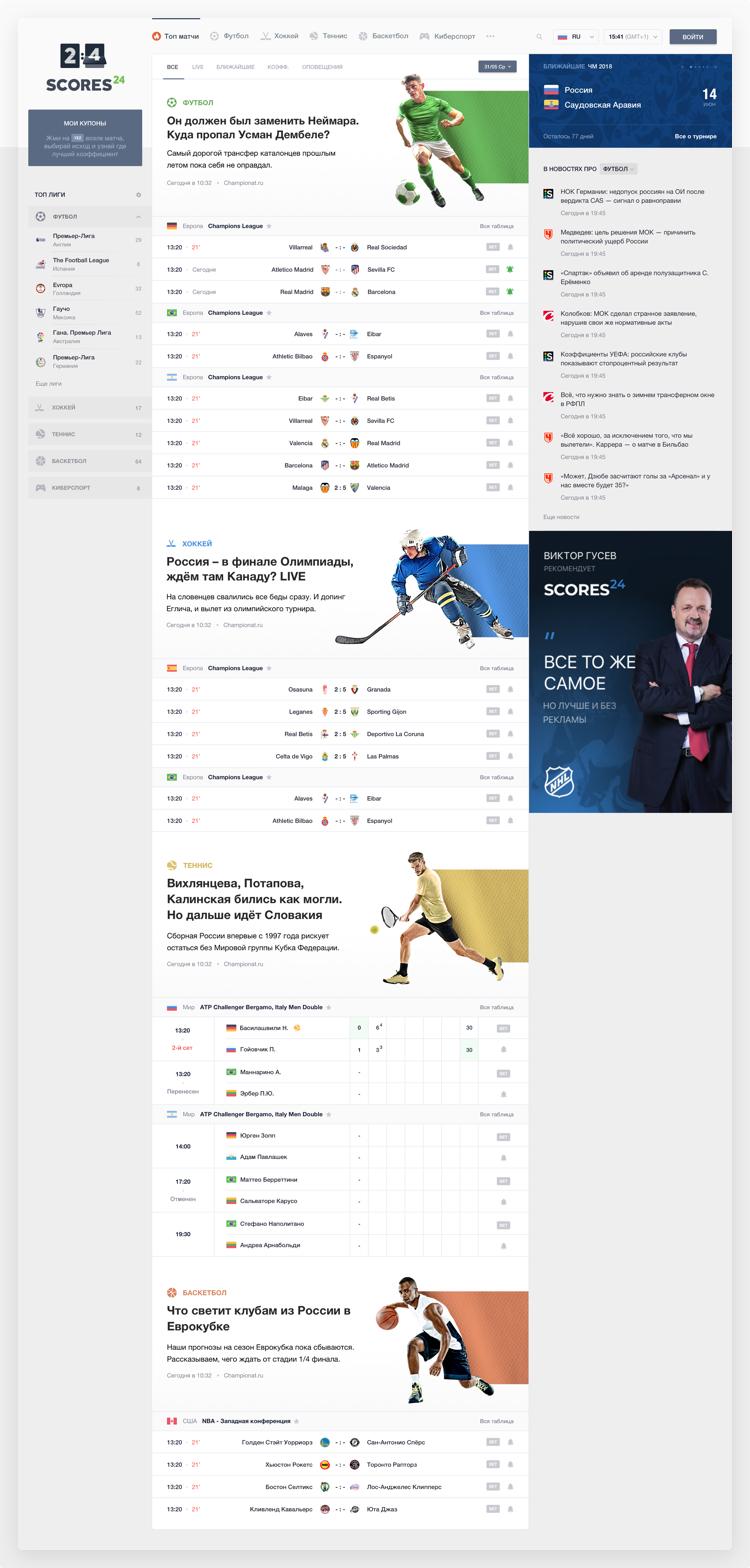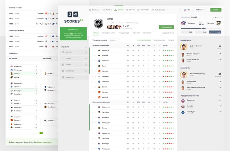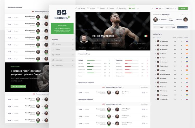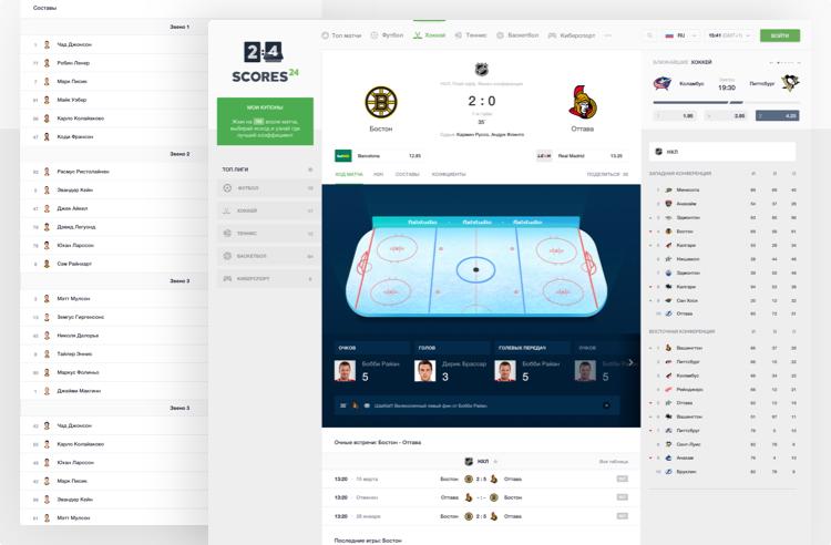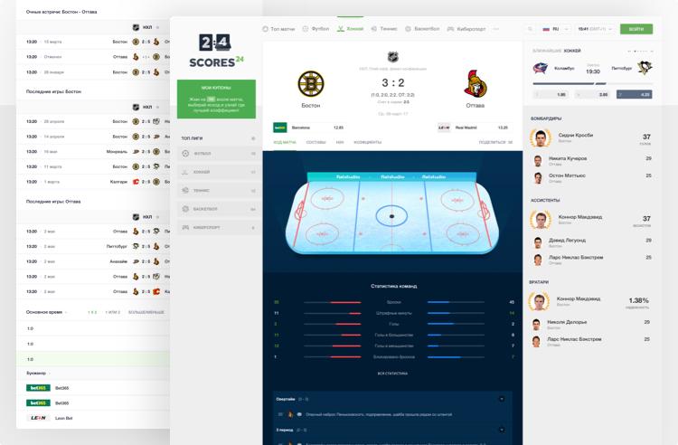 To create this platform we gathered our forces with Scores24 team and together we analyzed the current market of the Russian sportsbooks, that gave us an insight into the common mistakes and the needs of the fans. While designing Scores24 we focused firstly on sports pages taking into account the individual nature of each sport and the high requirements for data visualization.