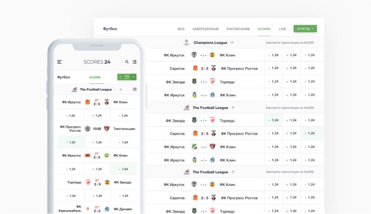 Scores24 is not a betting platform, thus the website doesn’t have betting option. Nevertheless, we incorporated a coefficient function to display coefficients from the bookmakers to help you understand what chances of winning each team has.