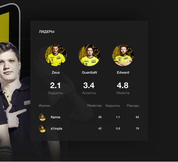 We tried on a our main design template for the Team modes, Streaming widgets and Discussion boards pages and also divided Playoffs, Team members and Group tournaments into LAN and Online. We also added Leaders of matches and Favorite weapons. All with one main goal – connect cyber players with one another.