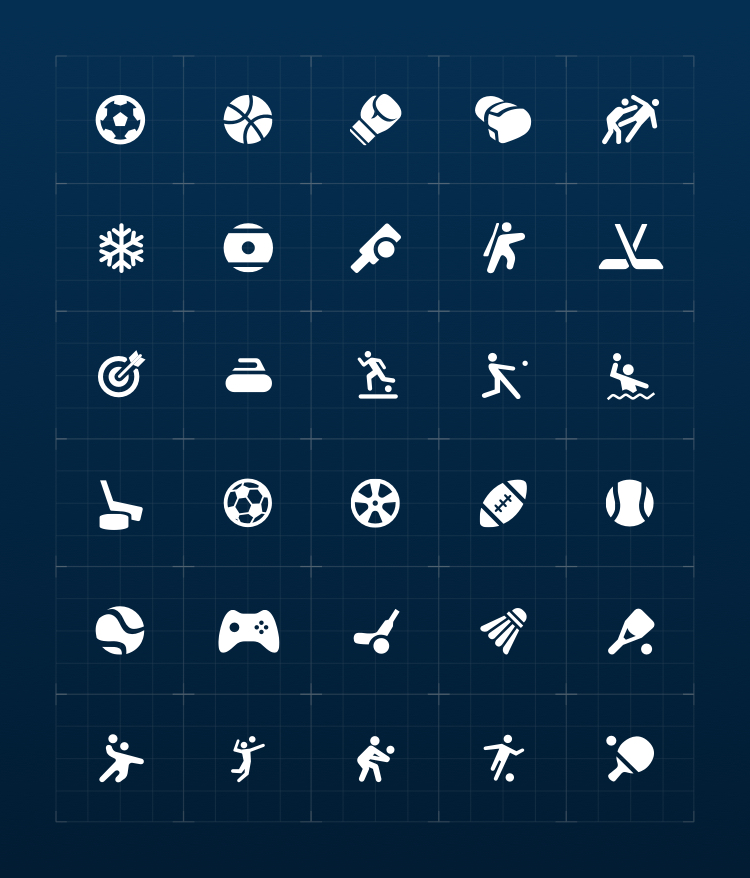 Enjoy sports in shapes and images. Here you can find vibrant and colourful custom made graphics and illustrations of the playing fields of the most popular sports created to enhance the user interface.