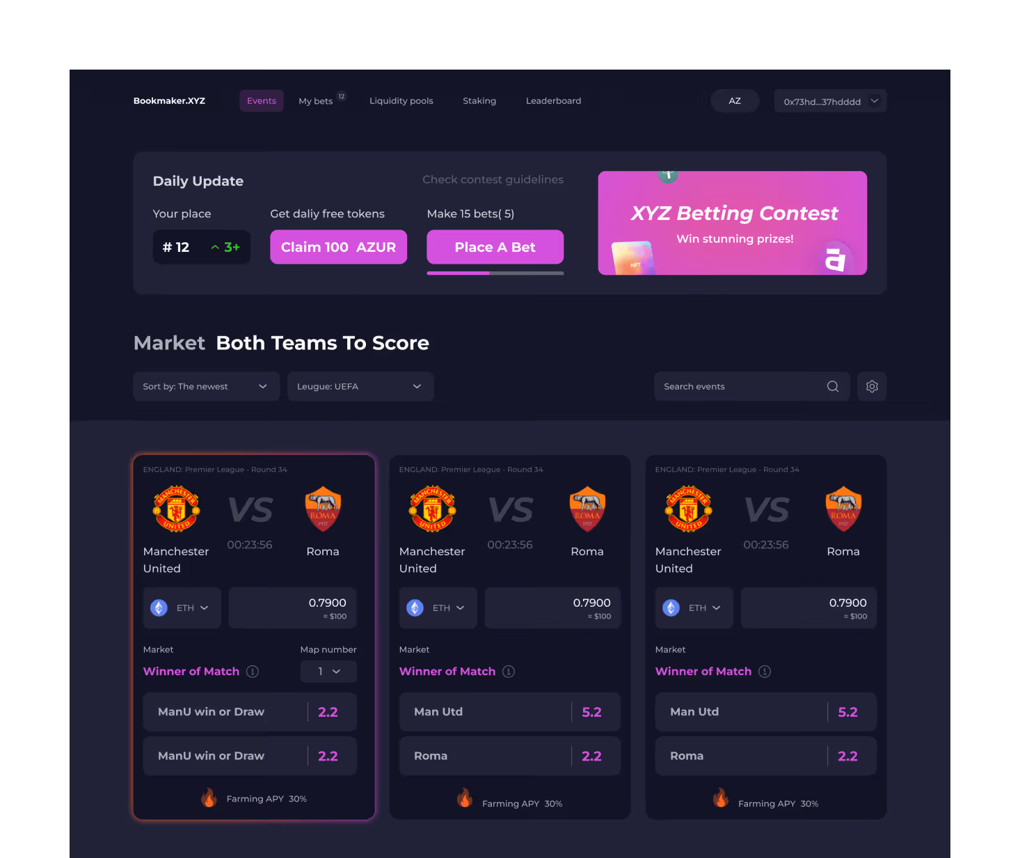 Simultaneously, we repositioned the visual identity. Much of the Web3 ecosystem at the time leaned toward chaotic gradients and insider aesthetics. We deliberately moved in the opposite direction. The name “Bookmaker.xyz” carries a dual signal: traditional authority in “Bookmaker,” digital-native positioning in “.xyz.” We built a proprietary 3D visual system to support that balance. Without relying on stock photography or borrowed trust signals, we constructed a cohesive brand world that felt intentional and controlled. This was not about aesthetics alone; it was about establishing territory in a crowded market.