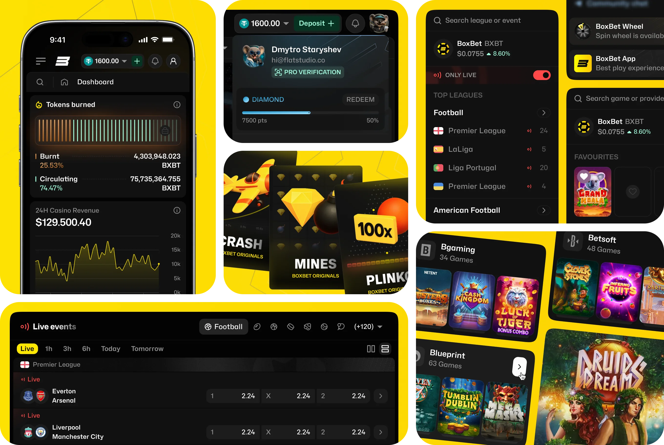 Full Flatstudio × BoxBet case study. BoxBet is a crypto iGaming platform: Telegram app, sports betting, casino, and its own BXBT token. For founders, product teams, and designers building or rethinking a digital product from scratch.