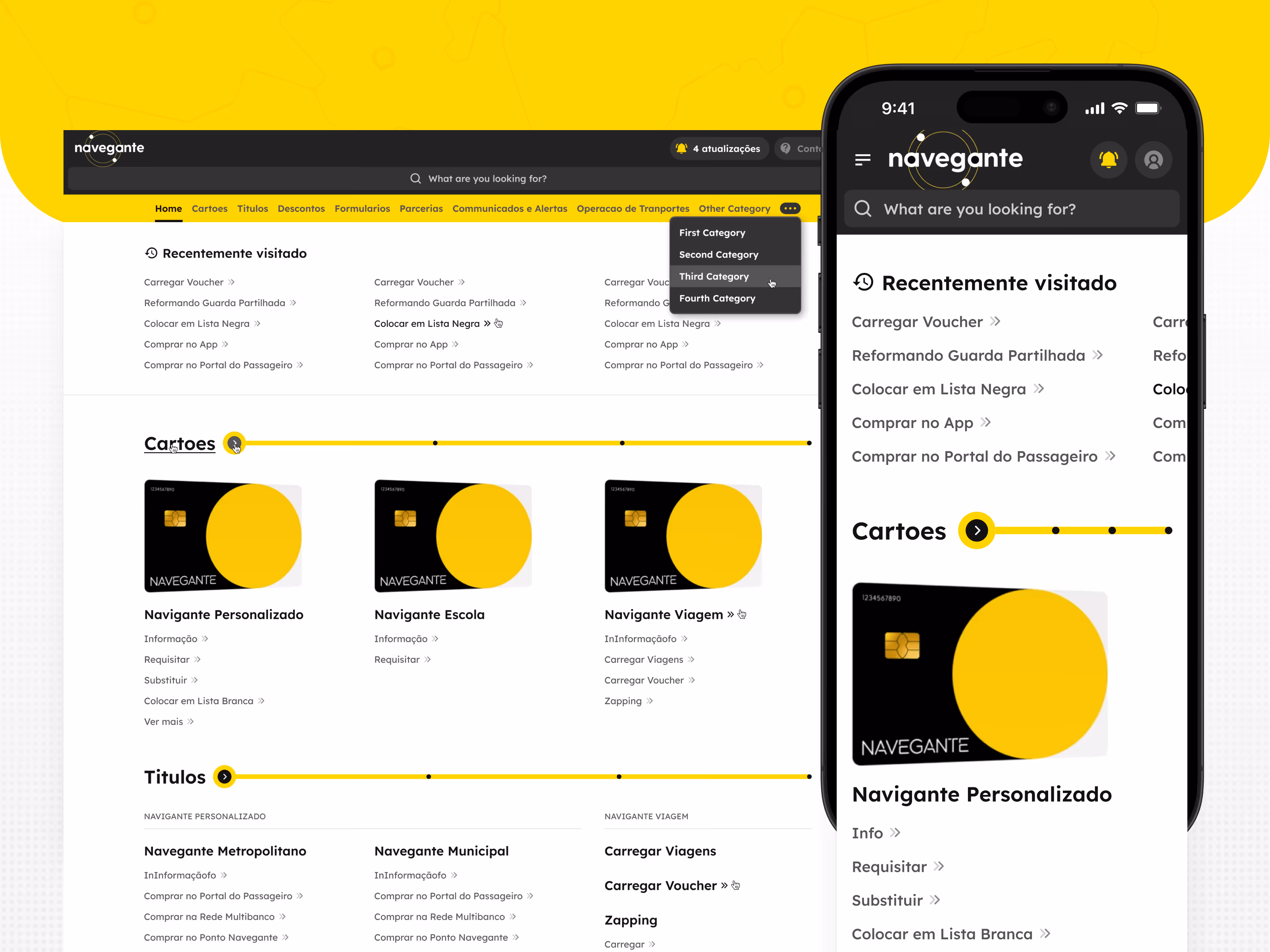 A separate product within the project was the landing page for the Navegante card (a €40/month subscription for all transport in the metropolitan area! By the way, it’s super convenient for hitting the beach after work, though the crowds have definitely grown!). We applied our marketing landing page experience here: bold yellow, clear hierarchy, and zero friction to understanding the price. It’s a product that needs to be understood instantly.