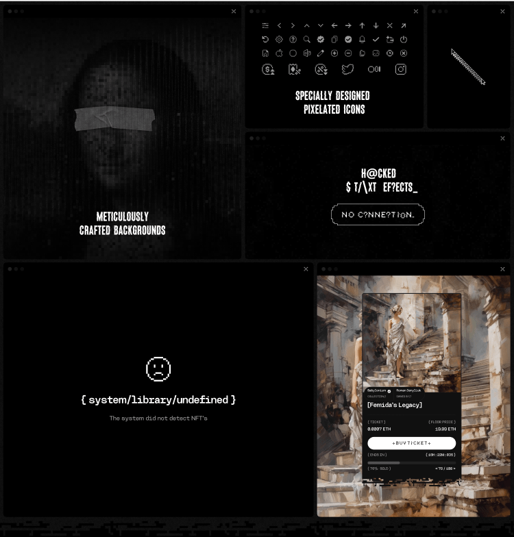 Our primary design tasks was to authentically recreate a pseudo-hacker takeover of the site through a dynamic combination of animation and UI elements, achieving an immersive user experience that resonates with the theme. Every element of the site was carefully thought out.