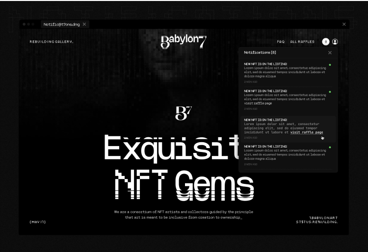 Step into a digital wonderland where art transcends boundaries. NFT gallery showcases a collection of unique, blockchain-certified masterpieces, each a testament to creativity in the digital age. Explore, collect, and own a piece of the future.