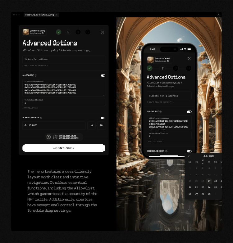 Experience seamless art exploration on any device. Our responsive design ensures effortless navigation through the NFT gallery, delivering a user-friendly mobile experience that brings creativity to your fingertips, wherever you go.