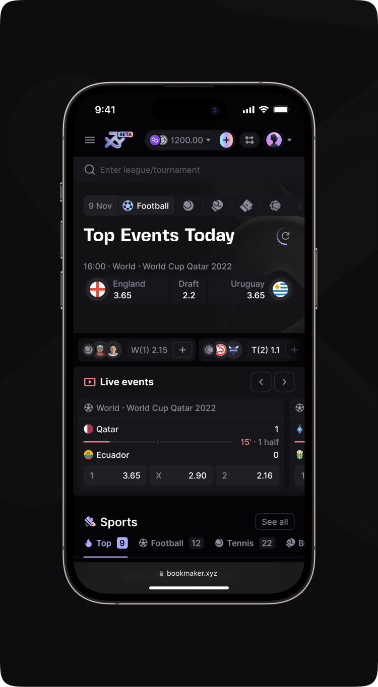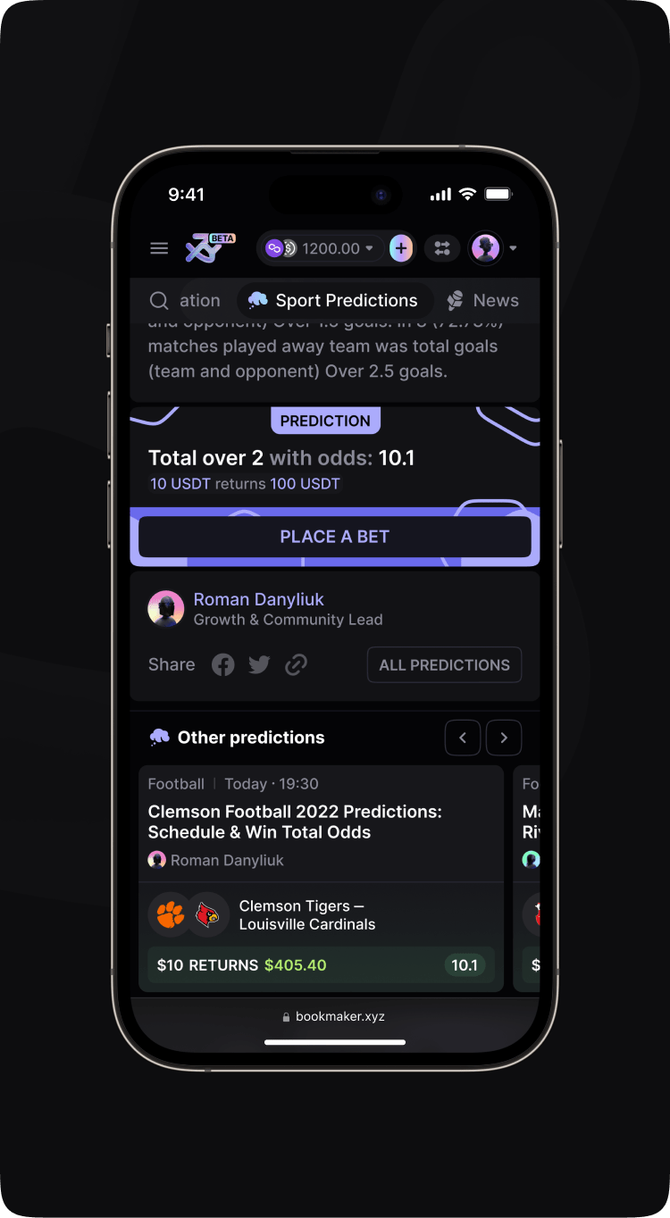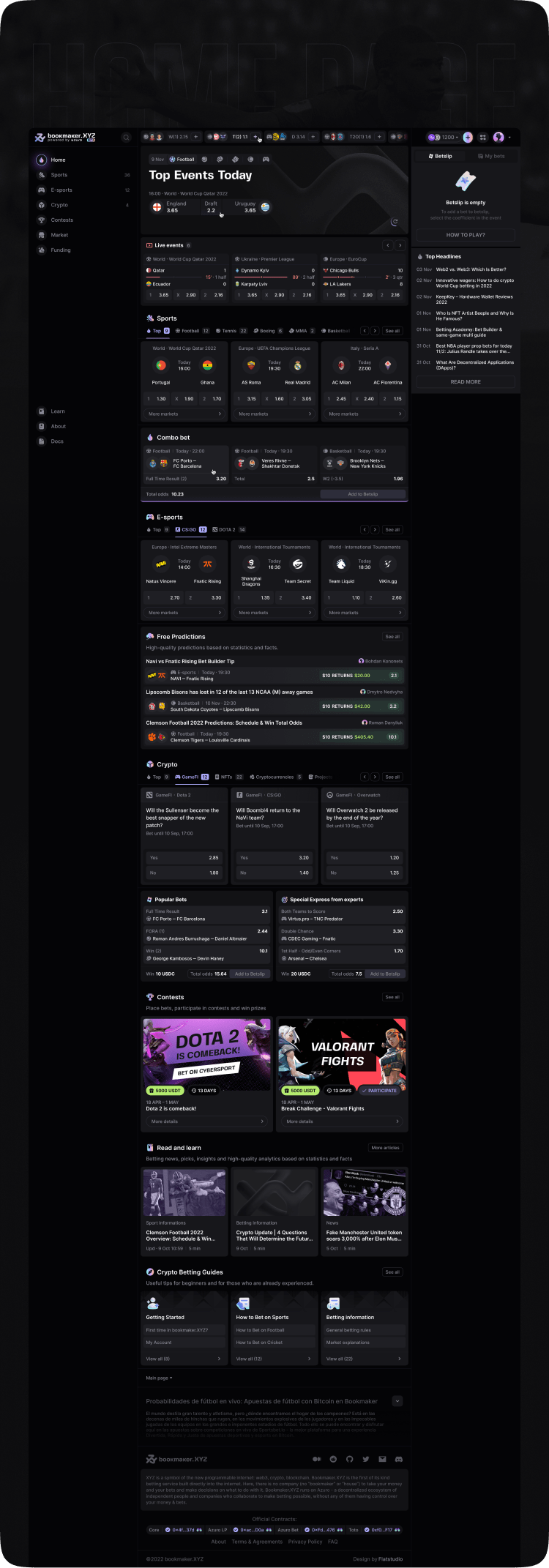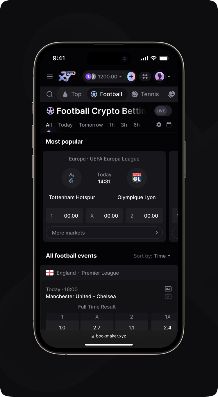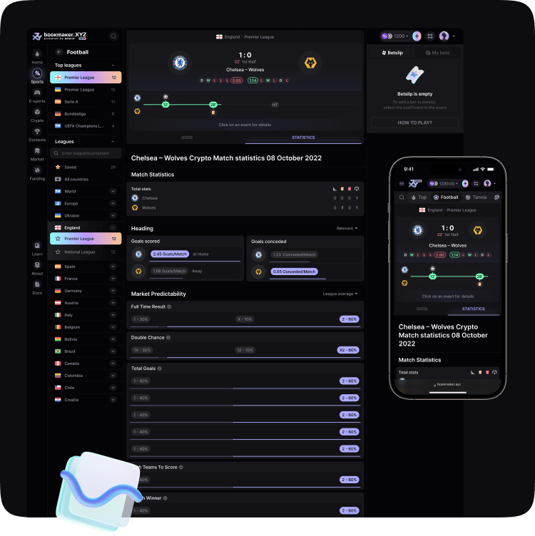 Bookmaker.XYZ isn't a typical bookmaker. You can bet and win here, but there's no house or sportsbook betting against you. The funds are distributed by Azuro protocol, being held in blockchain contracts.