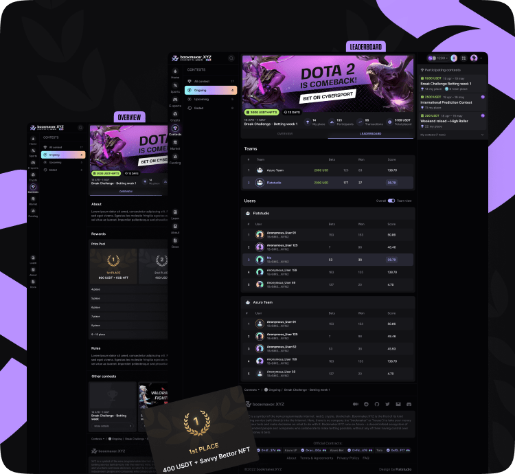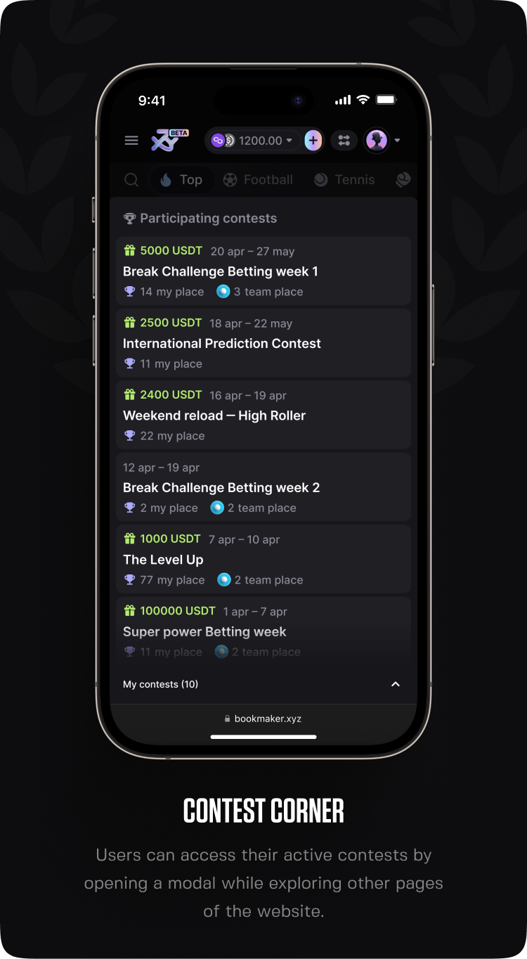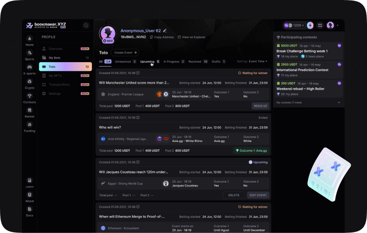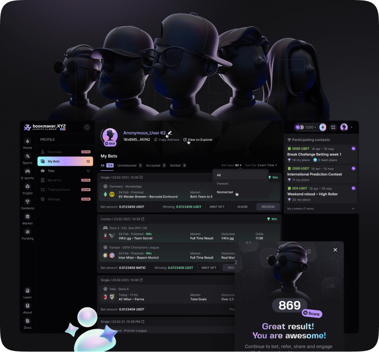 Get ready to be engaged and entertained with the sportsbook contests! When you're feeling social, you can go head-to-head with other players. Best of all, you can do it while keeping your anonymity intact, which goes along with the web3 principles.
