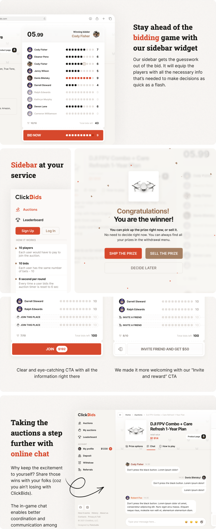 In a market full of overwhelming and dubious websites, our focus was to set ClickBids apart as a sincere and safe platform without putting the players to sleep.