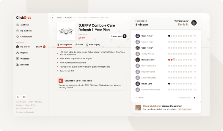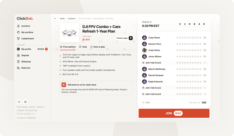 Clickbids is a promising startup with a fresh vision and intetnion to change both the traditional bidding proccess and winnings delivery.