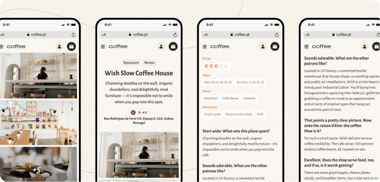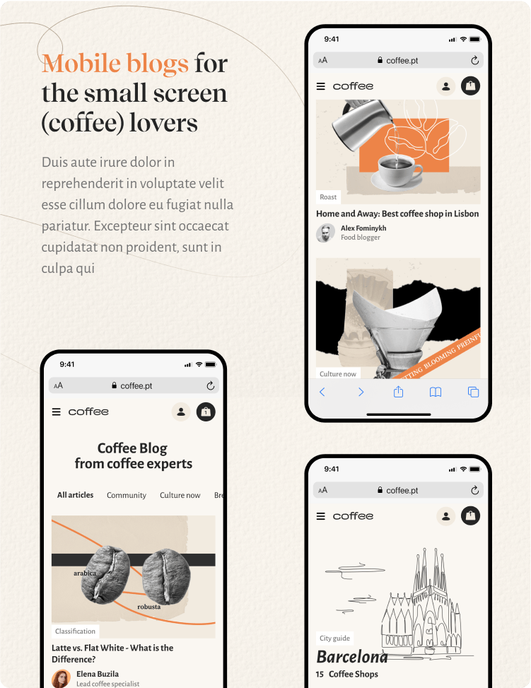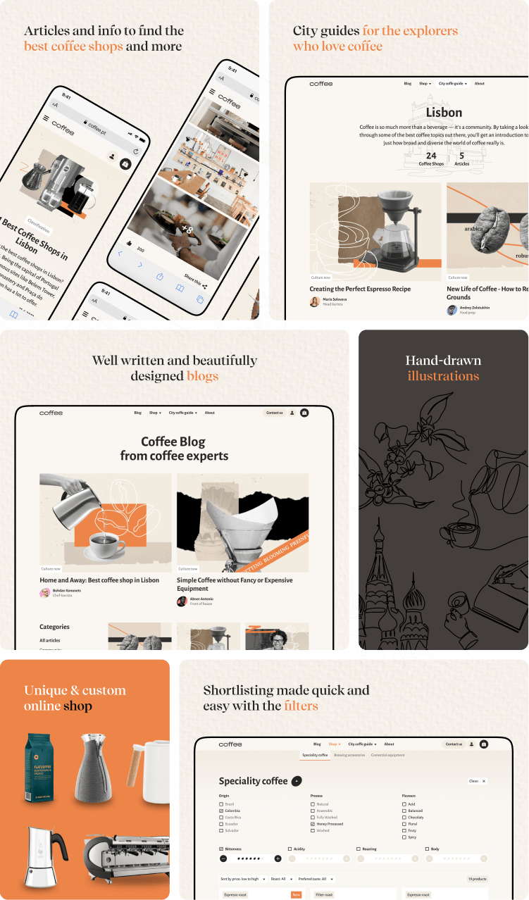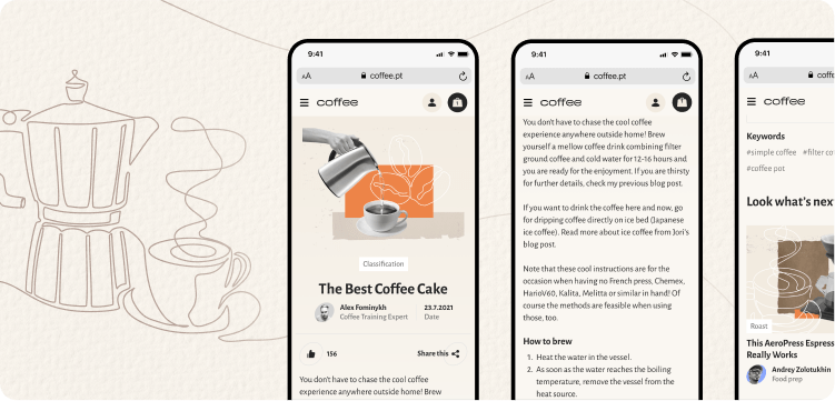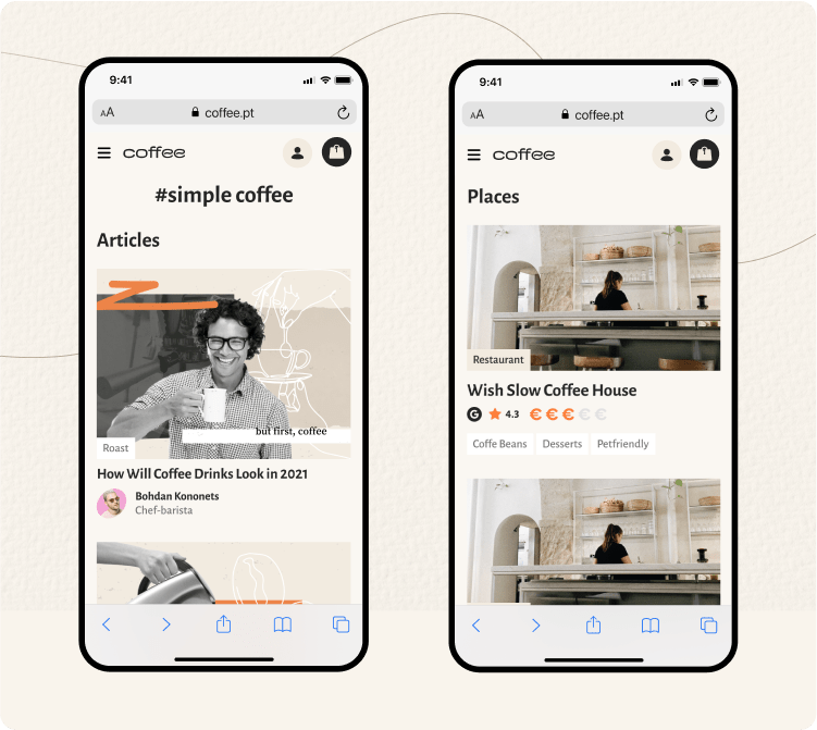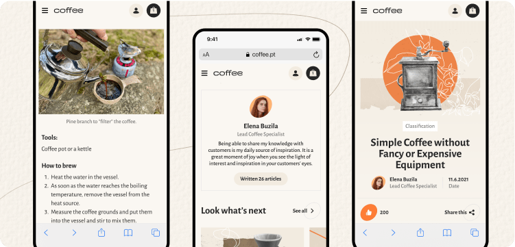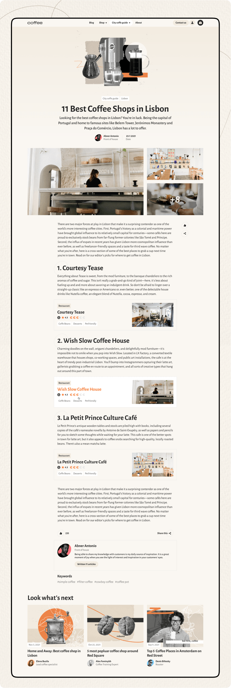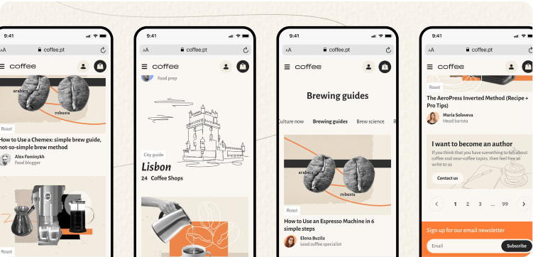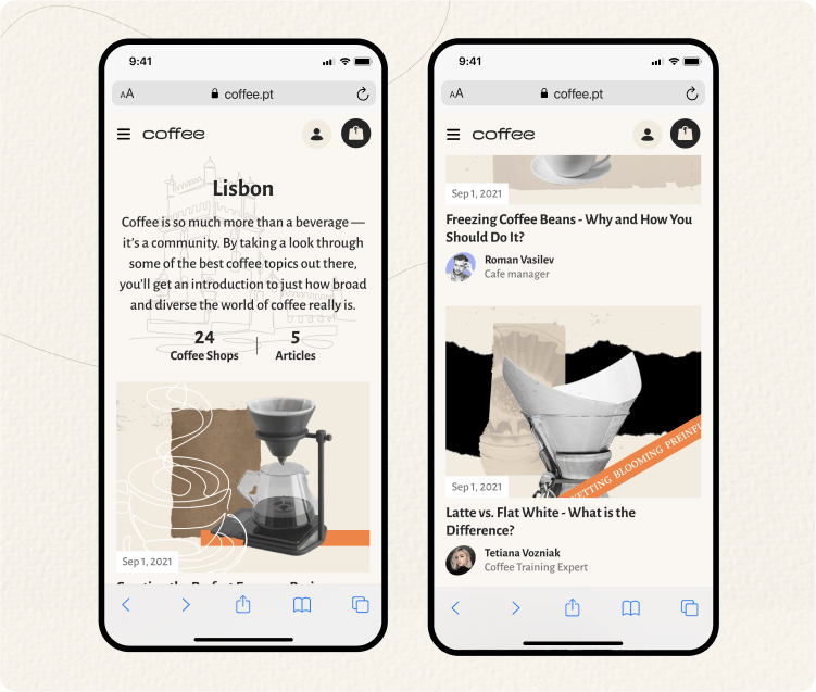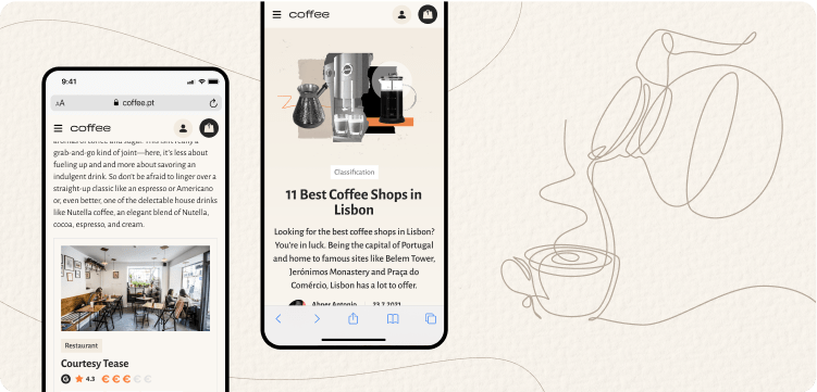 Coffee.pt has an amazing collection of content about coffee and topics related to it. We made their articles look elegant and chic (something the users would love to binge on).