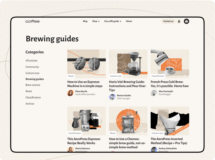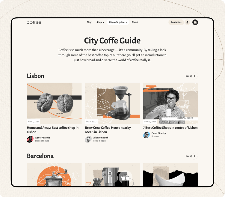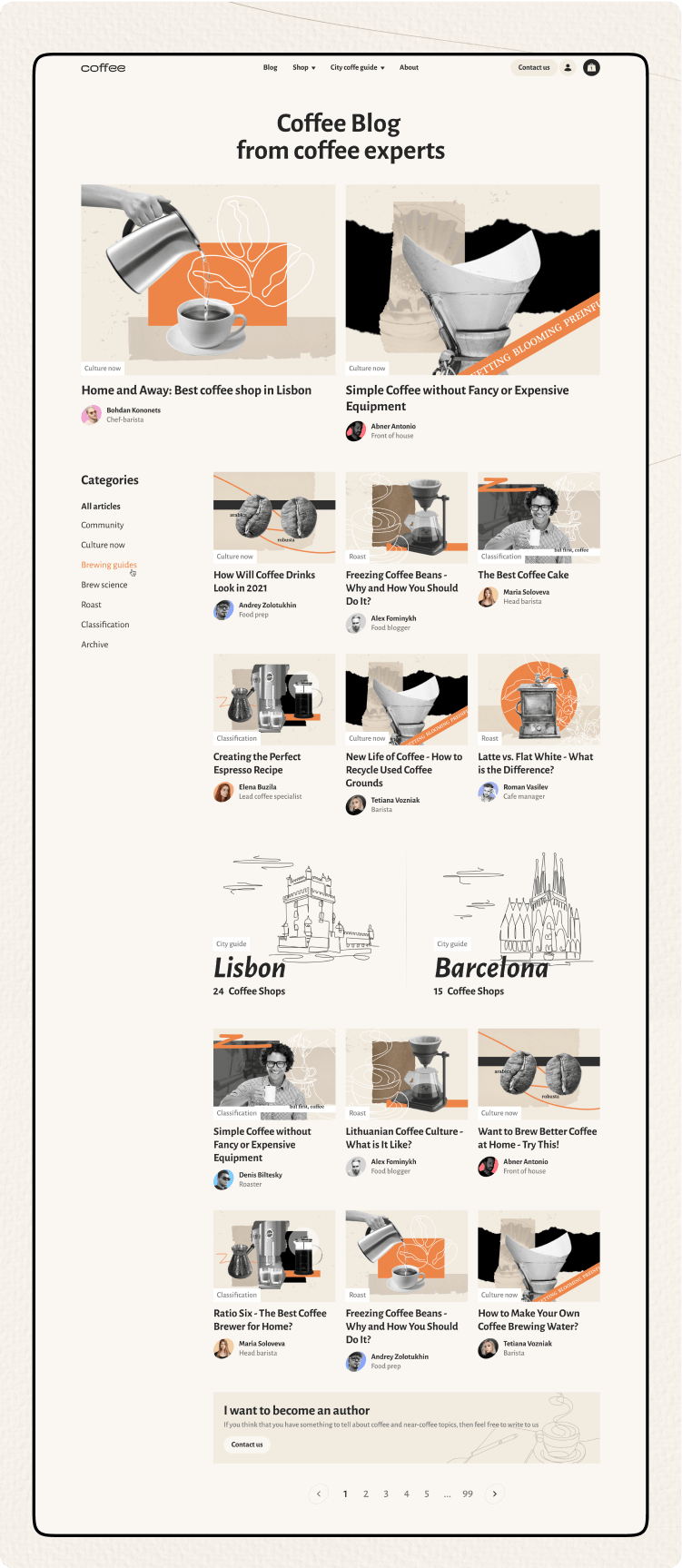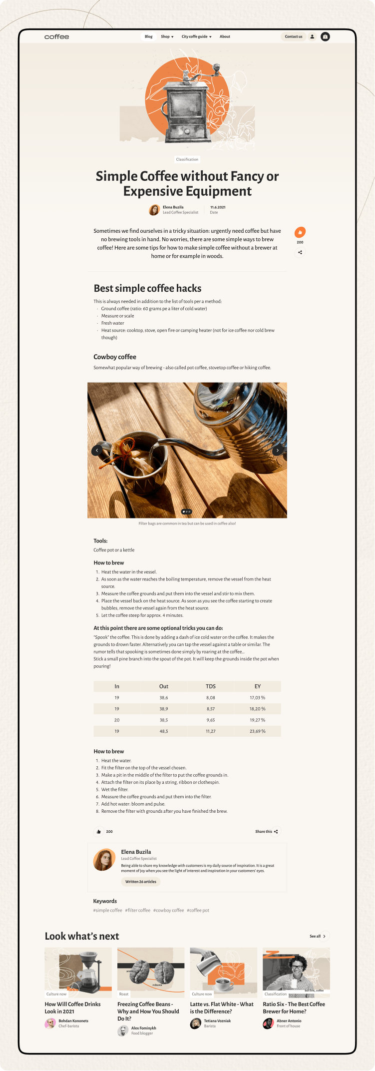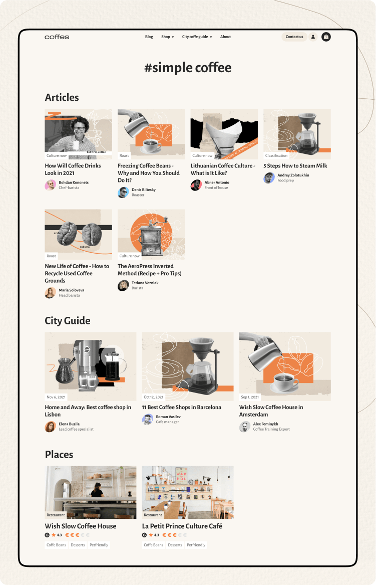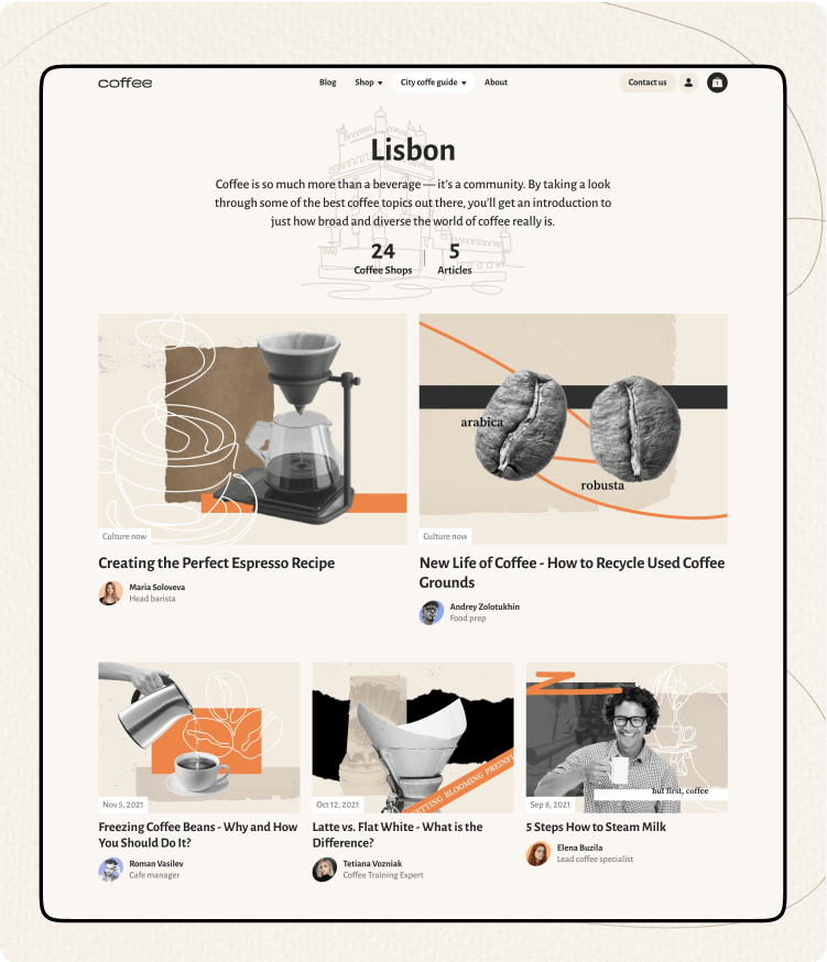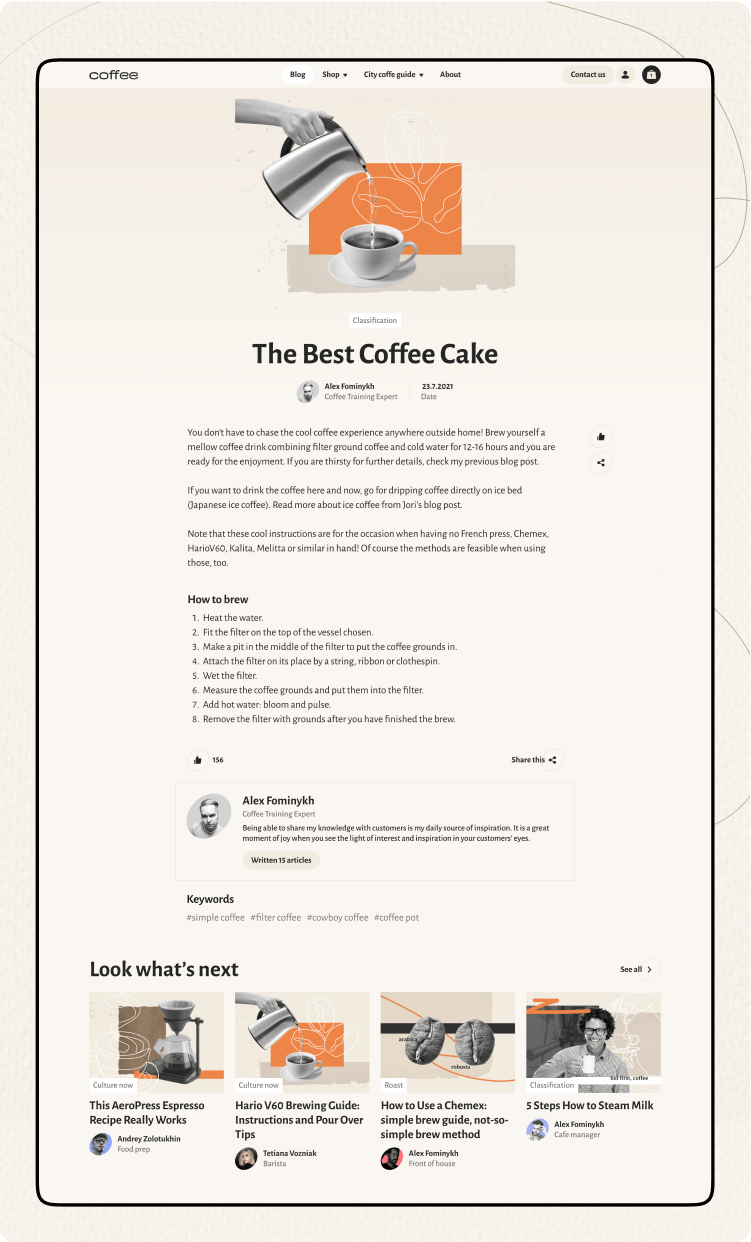 We know that the coffee community takes their blogs seriously (so do we). We chose an elegant and modern design that makes the page look aesthetically pleasing and keeps the focus on the content.