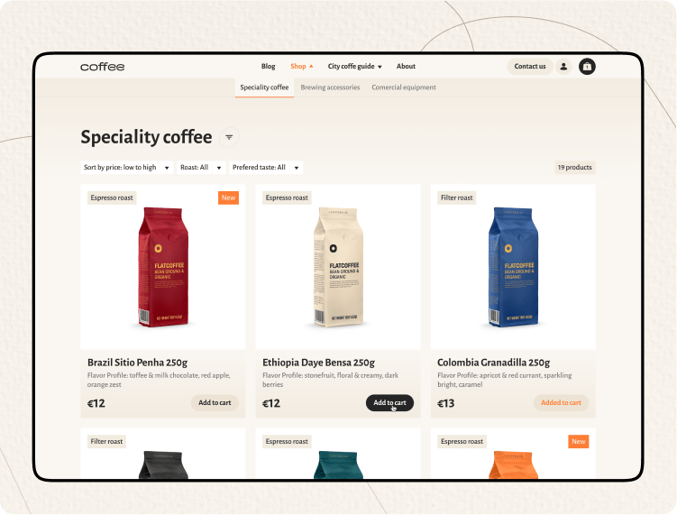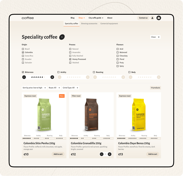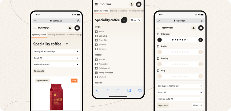 One can’t afford to go wrong while sorting their coffee, especially a specialty coffee. With our filters in place, the users are sure to sort and find the coffee they like in a blink of an eye. When dealing with filters, having too many options can overwhelm the customers. Too few, and you prevent the users from finding what they’re looking for. We did good amount of research and figured out a filter design that perfectly balanced the number of options and the aesthetics.