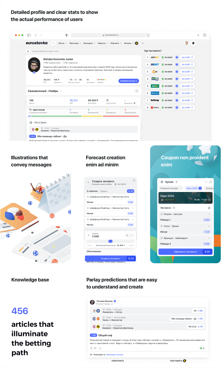Eurostavka pursues an ambitious intention of becoming an ecosystem for gamblers, offering them all of the functionality they require to make an apprised decision. Still, the fundament for it stands on three key pillars.