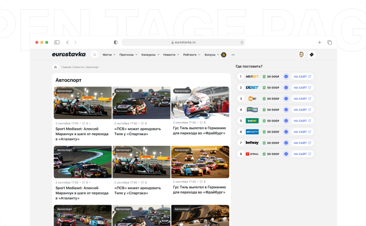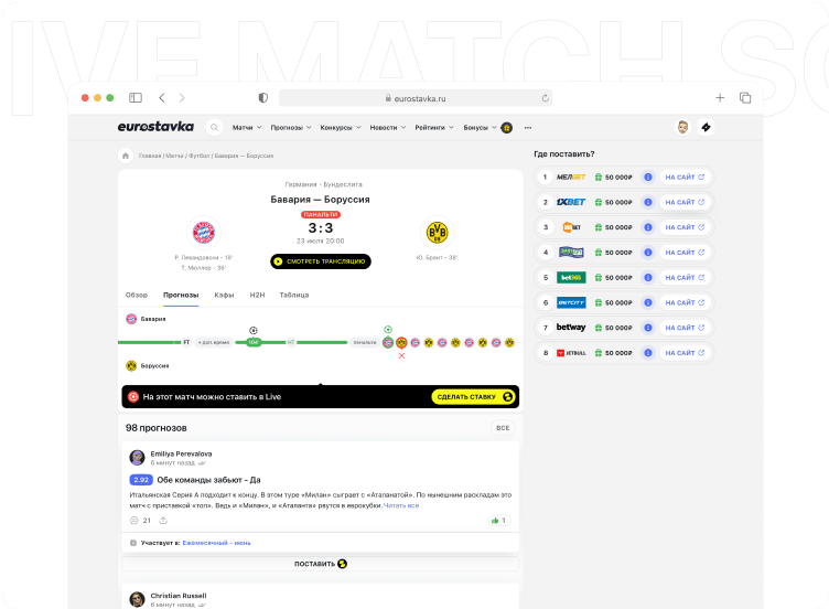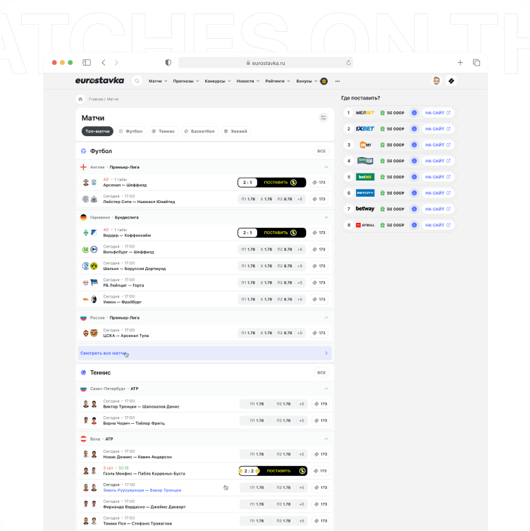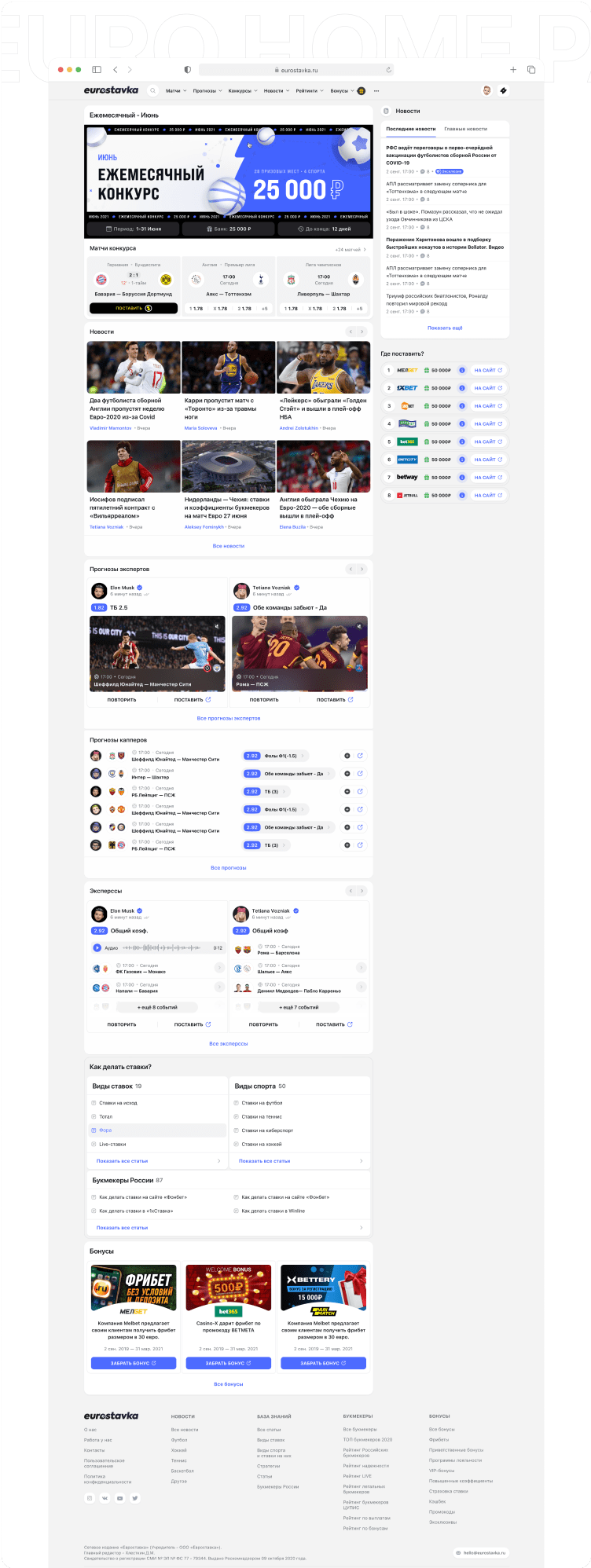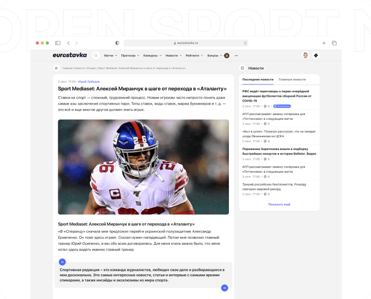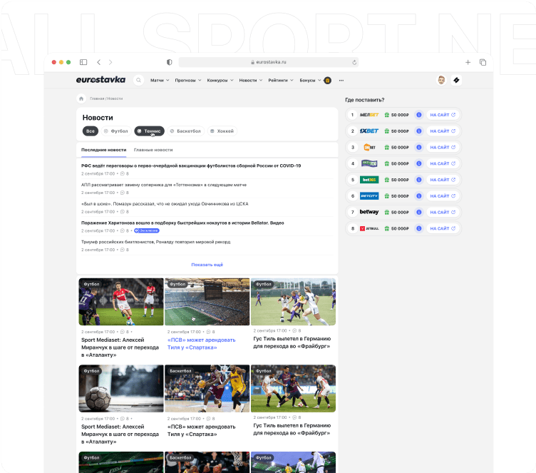 Eurostavka offers exclusive news and on-time updates, allowing to create informed predictions as dynamics in sports are presented not only on stadiums and during matches but behind-the-scenes as well.