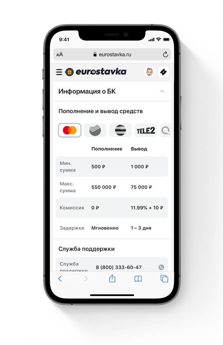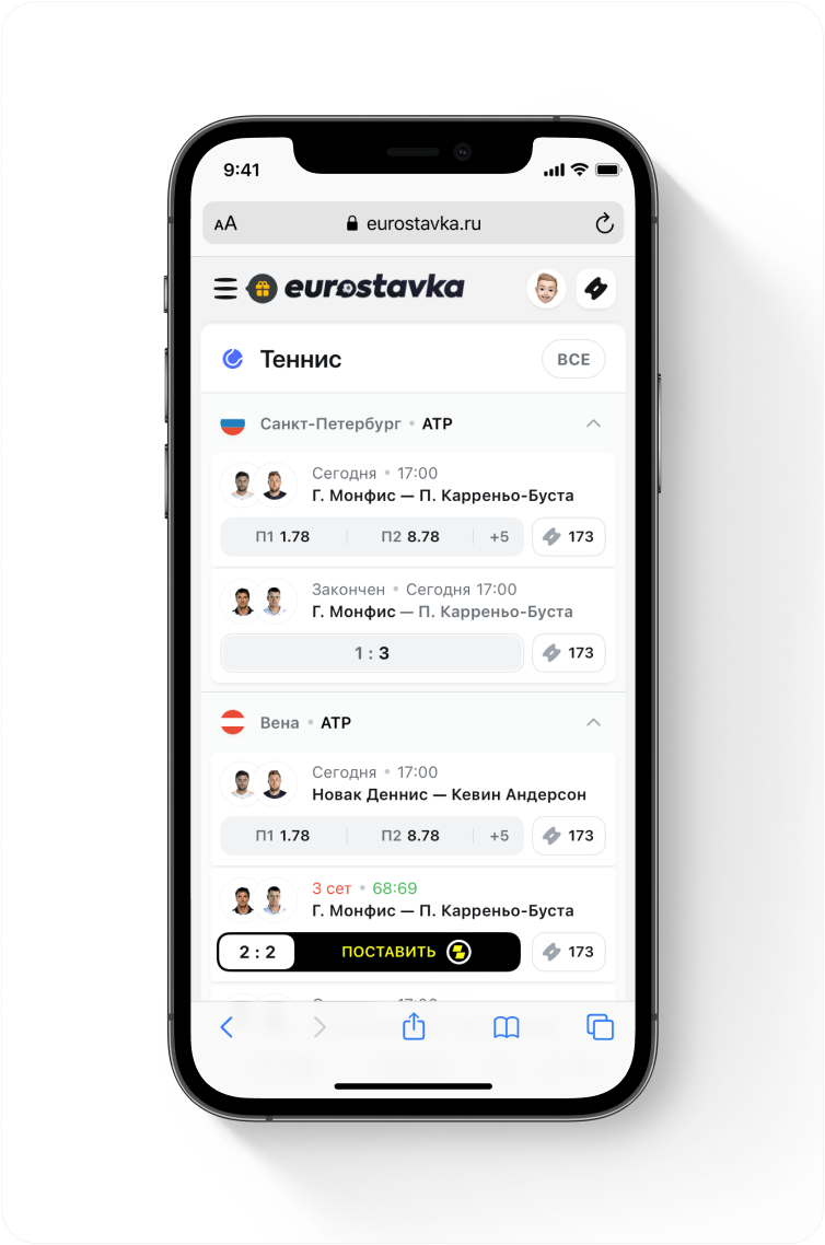 Eurostavka has a range of the most noteworthy football, tennis, hockey and basketball events. Most users don't need secondary leagues and prefer to bet on rather popular matches so the page is designed to provide them with an easy solution and let others find what they need.