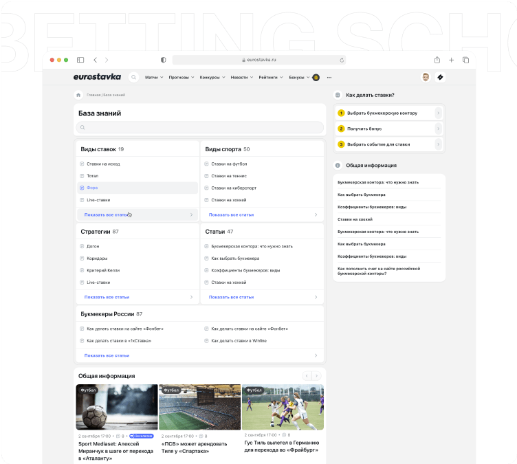 Profitable betting requires both skills and awareness. Eurostavka is created to educate and train for free; it would not be complete without a comprehensive explanation.