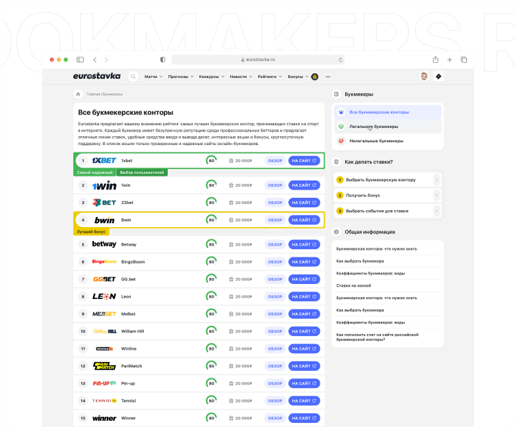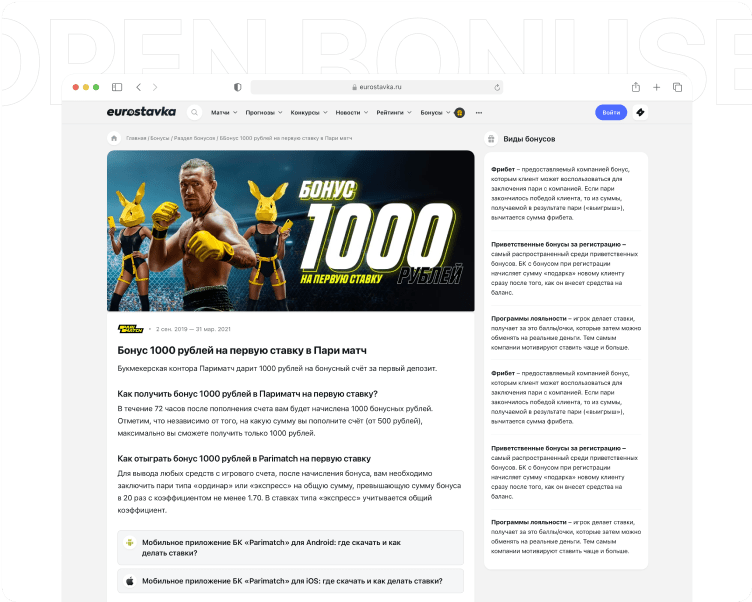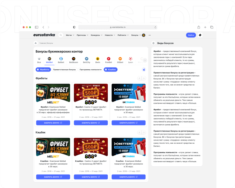 Bonus and campaign details are crucial, but the actual value of Eurostavka is an explanation of things – a glossary in a sidebar.