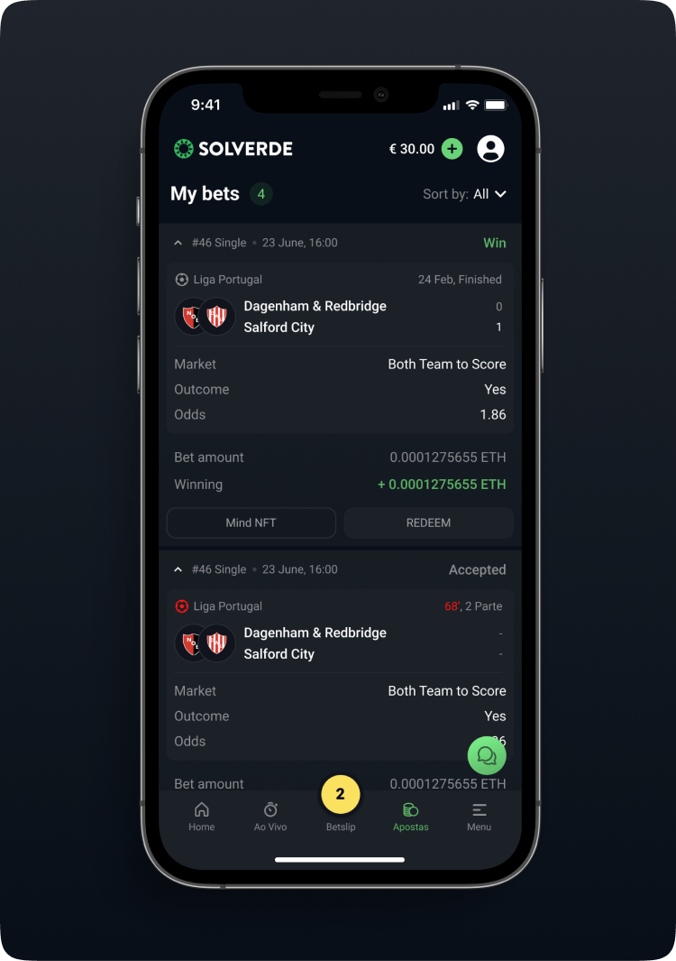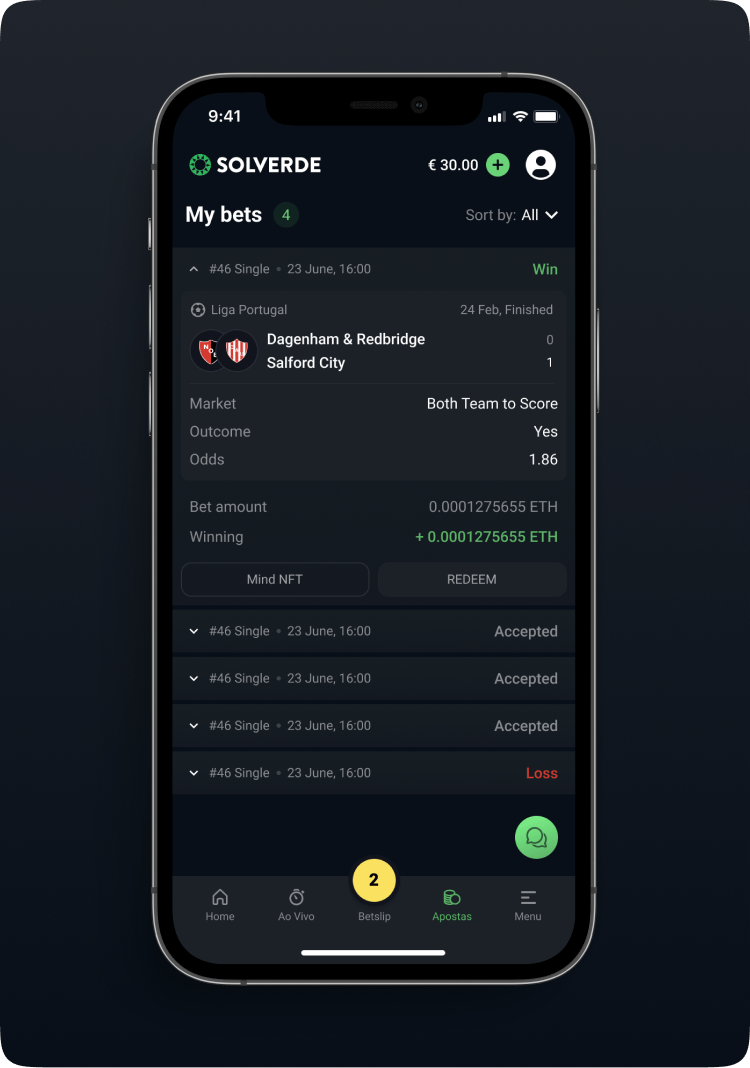 Here a user gets to track performance of their bets and find all the key details. He also has an interesting alternative to sell his bet in exchange of NFT in ethereum crypto currency.