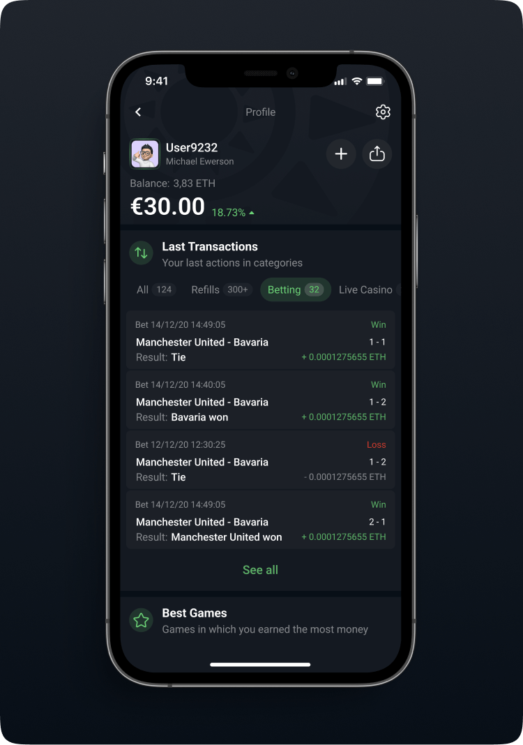 Don’t remember how much you spent during the last game or if you won/lost? No worries. Everything from the balance and last transactions to stats and bonus’s progress is nicely listed in this section. Oh! And you can add/withdraw money coz that’s important too, right?
