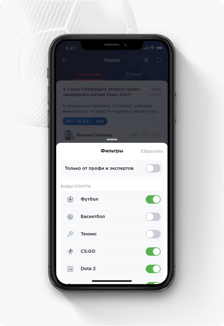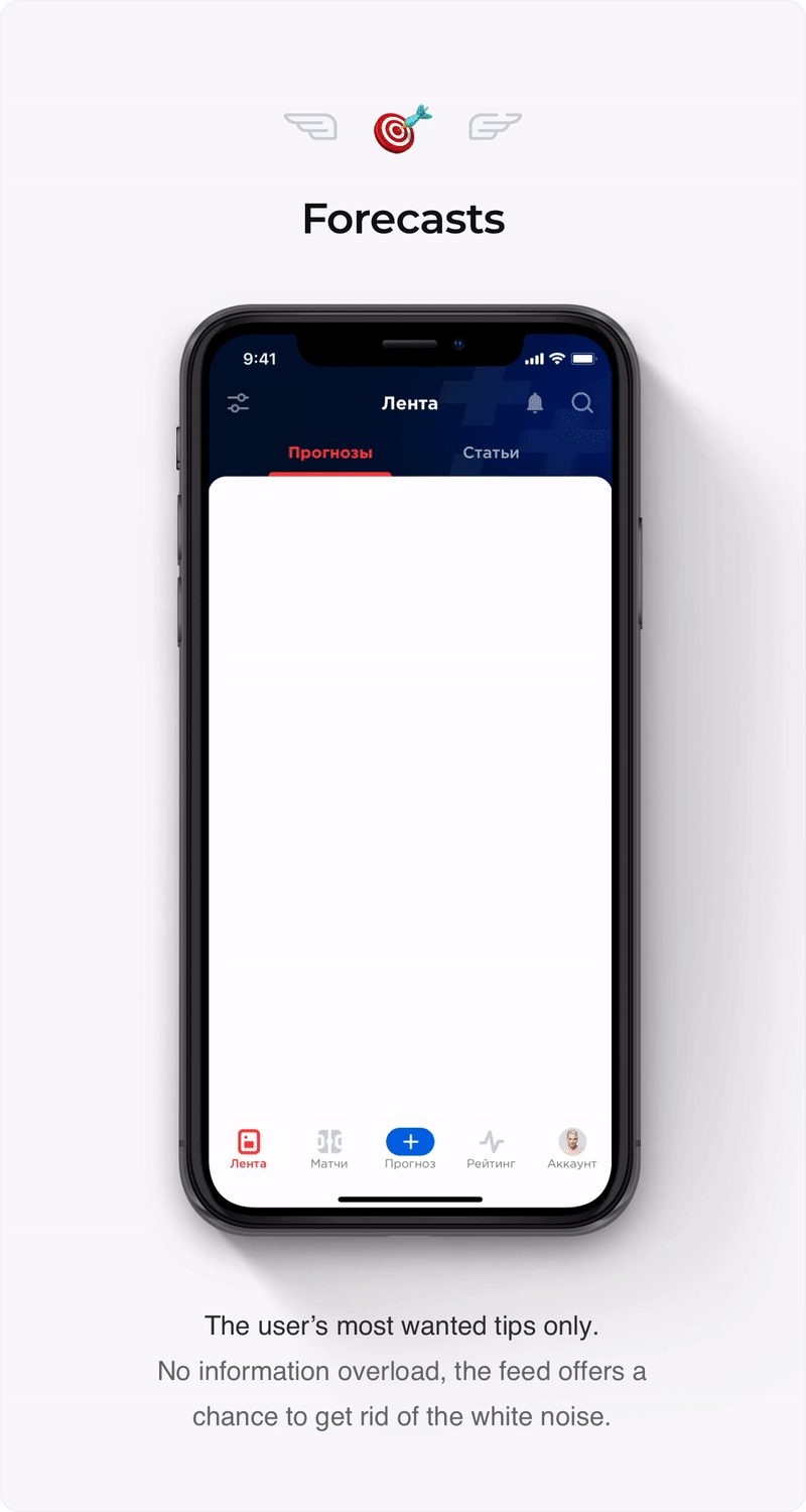 The main screen is the user’s personalized and customizable feed of sports tips that is based on the followed tipsters.