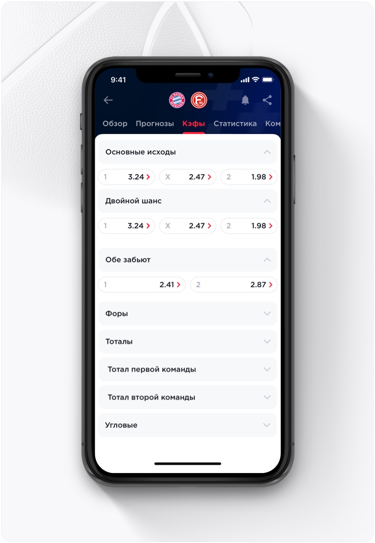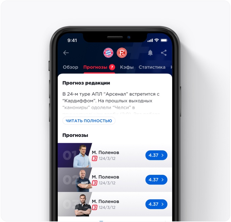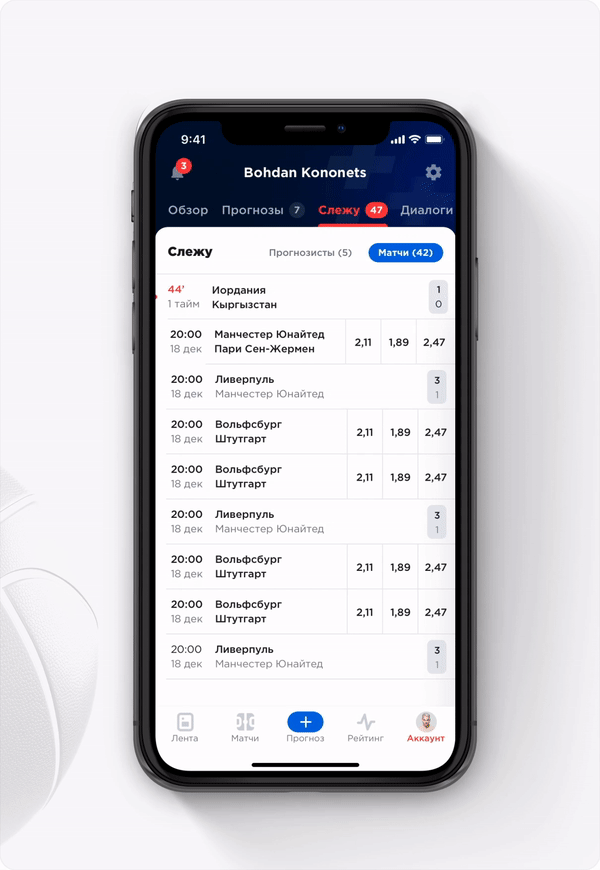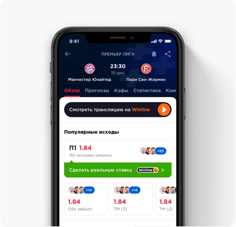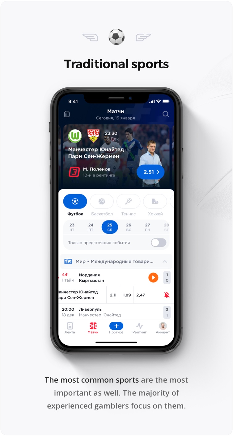 The match center is where all the available games are presented and can be easily accessed. Many various sports and the possibility to easily add even more – one of the most important features of a sports app.
