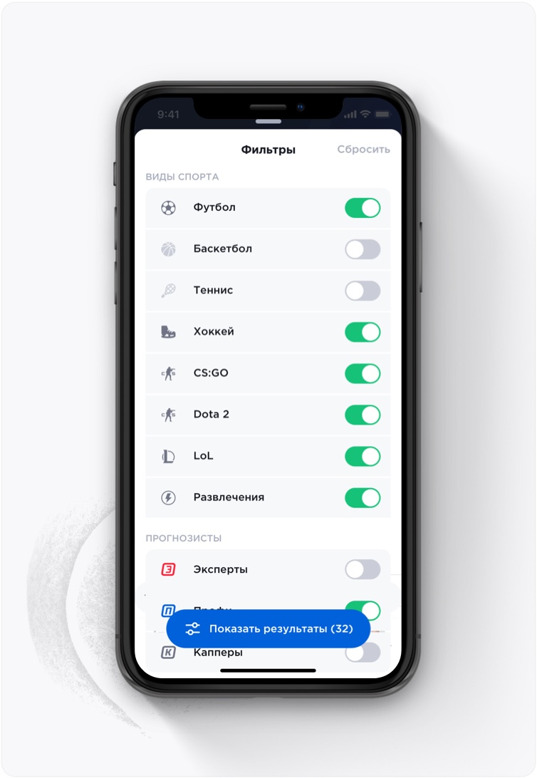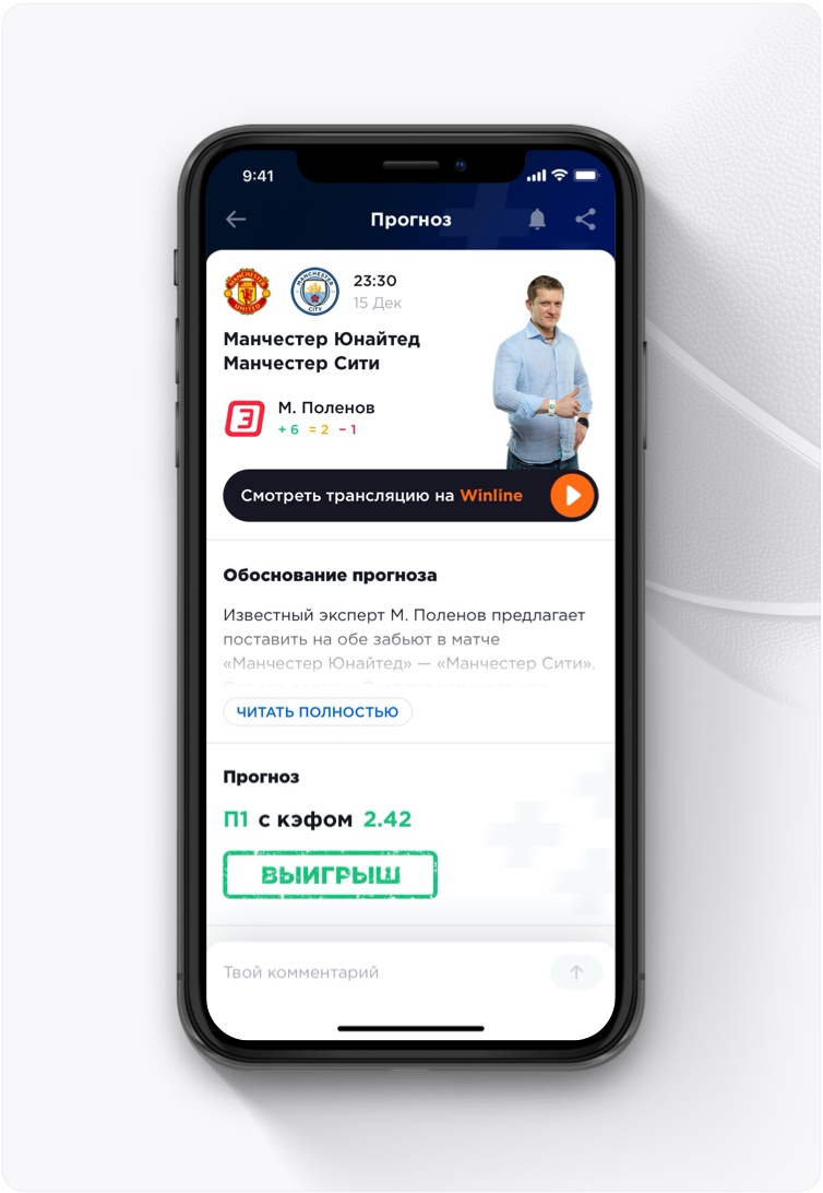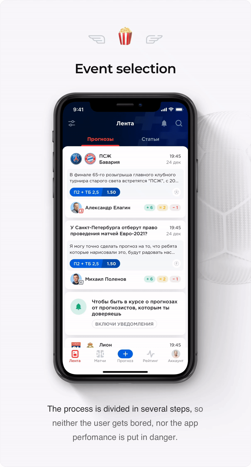 The match center is where all the available games are presented and can be easily accessed. Many various sports and the possibility to easily add even more – one of the most important features of a sports app.