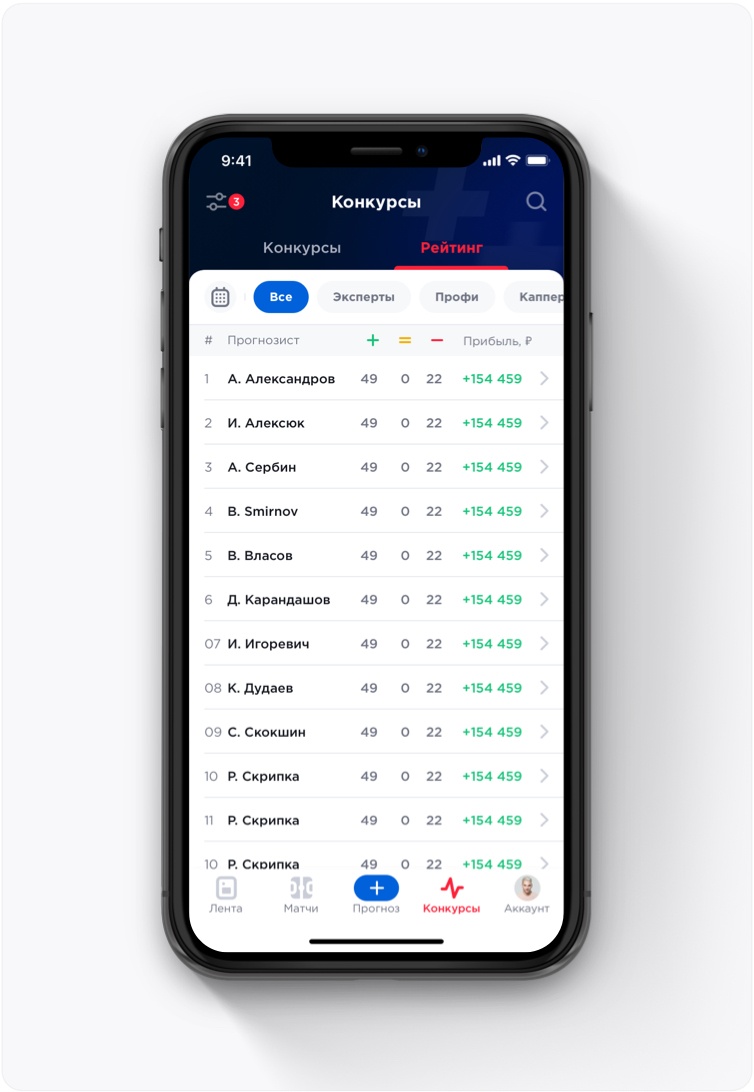 Ranking of users based on the results of their tips and results – monthly or contest-based. Best of the best receive both prizes and praise.