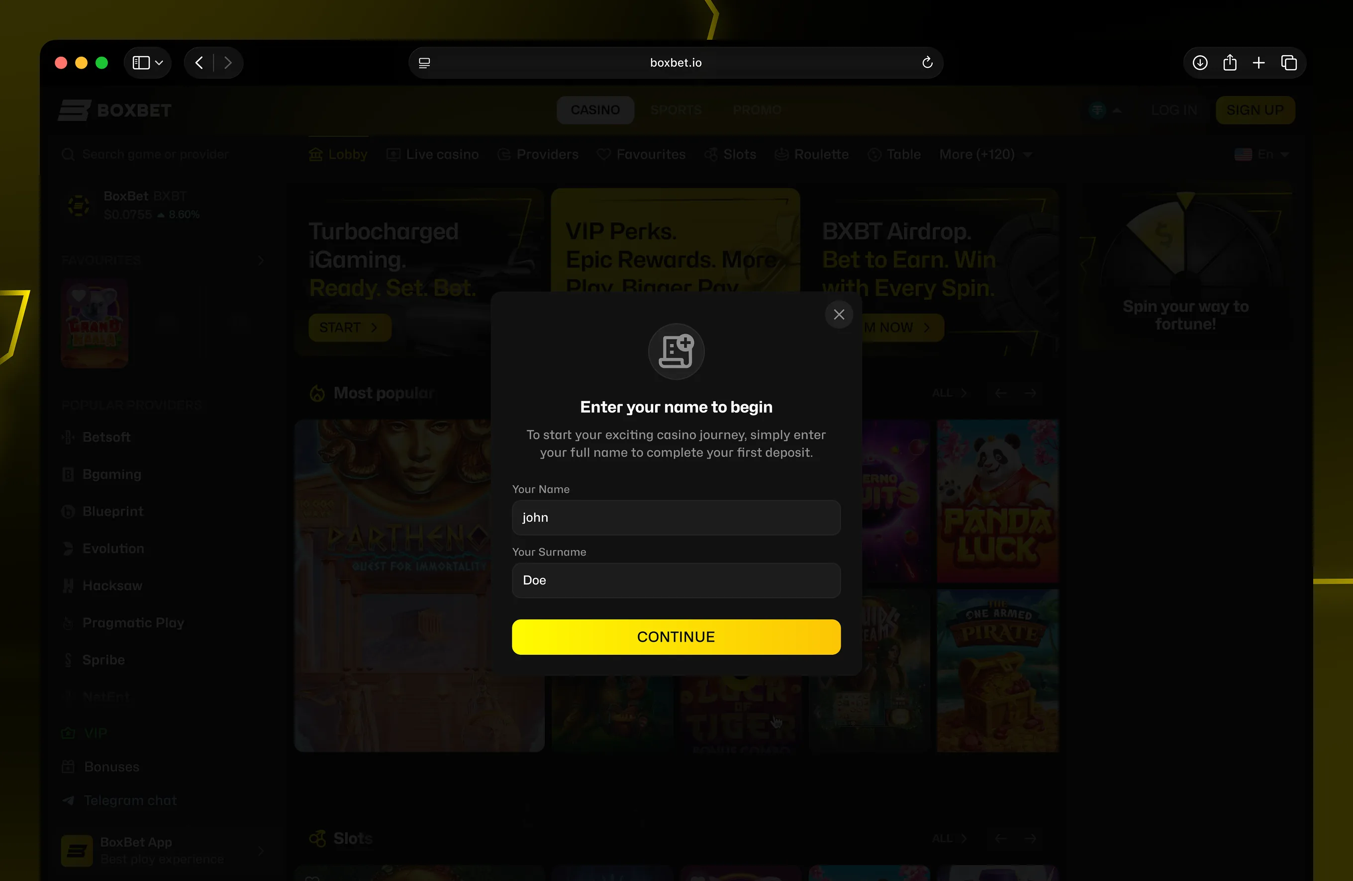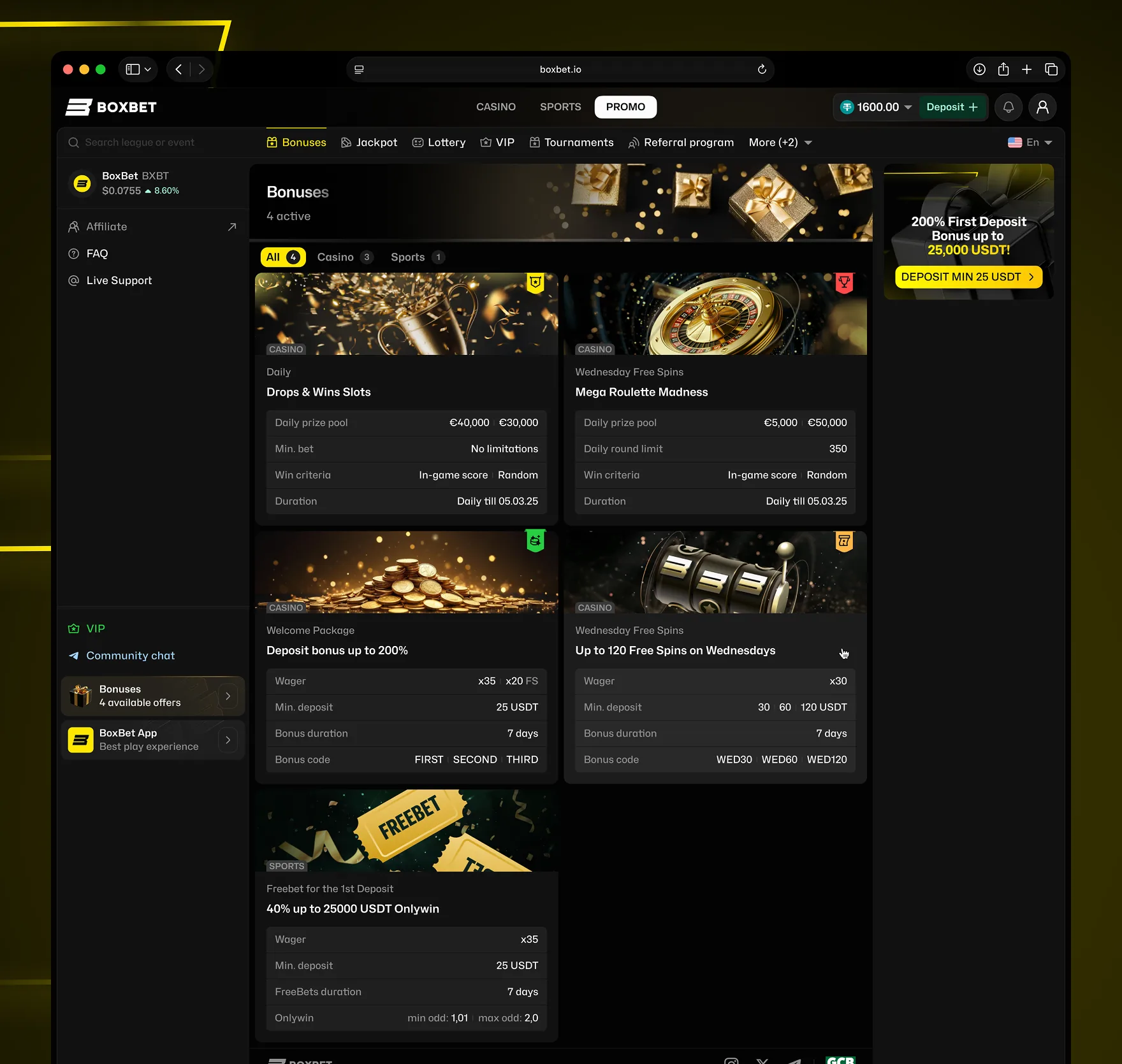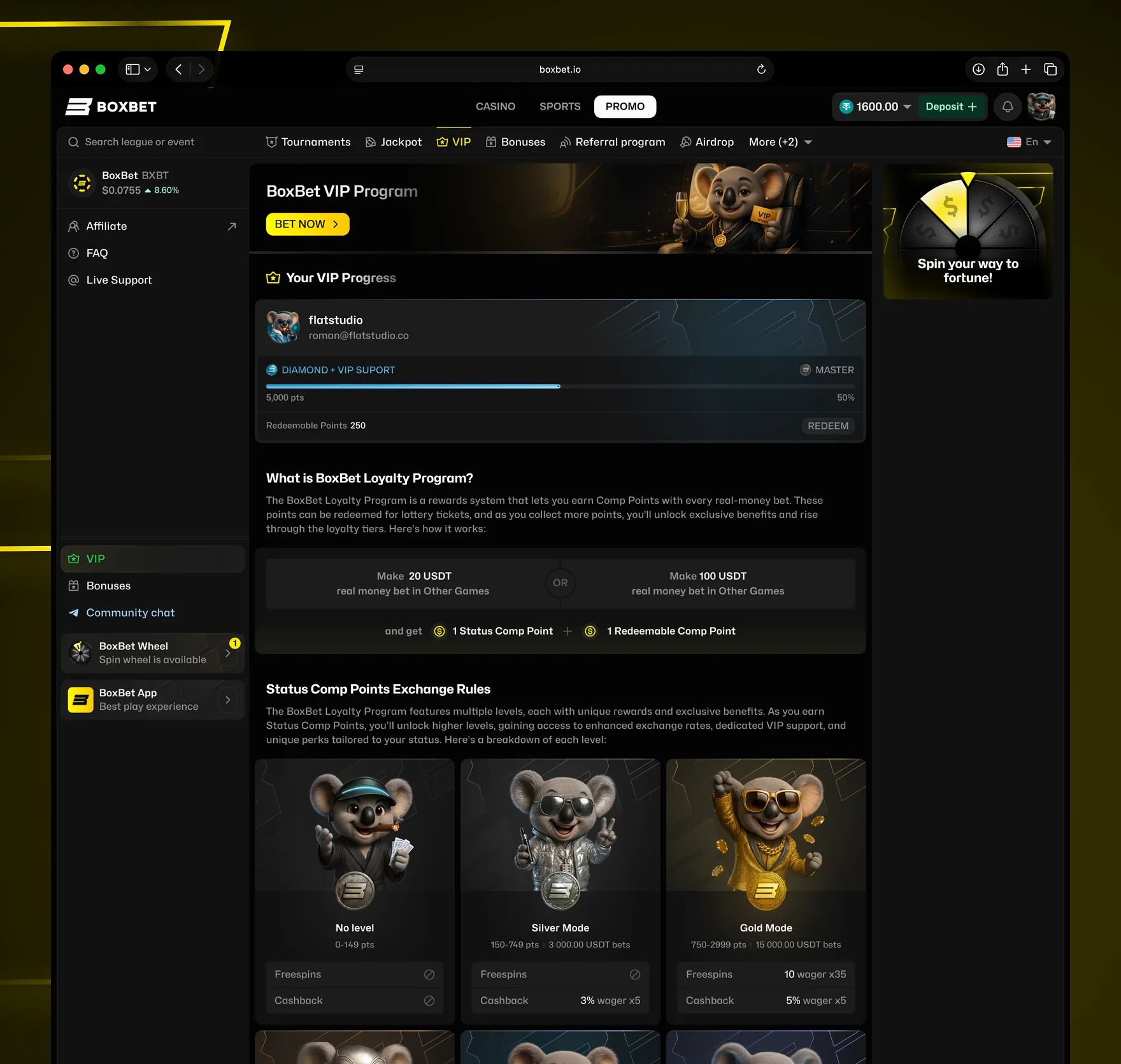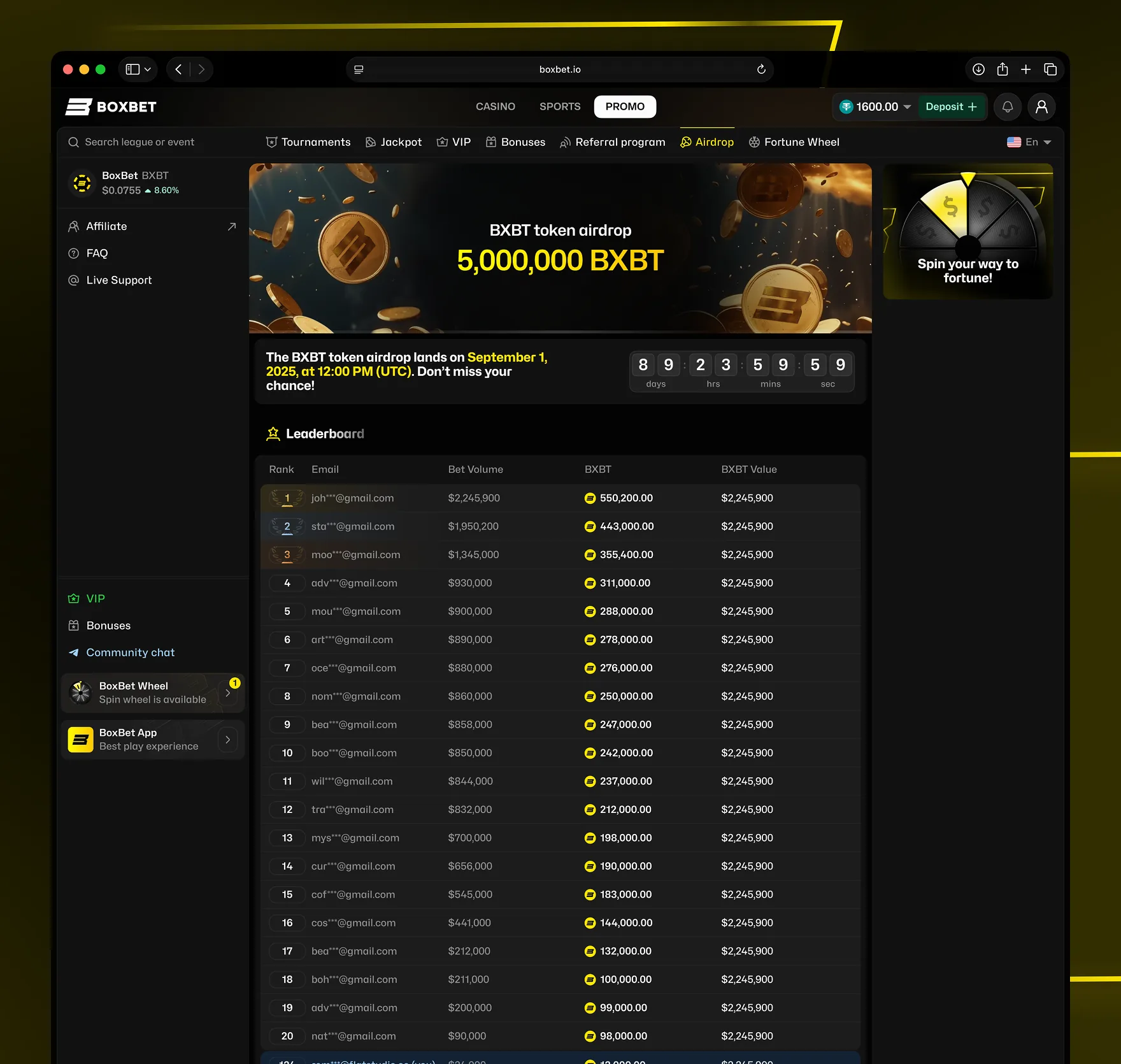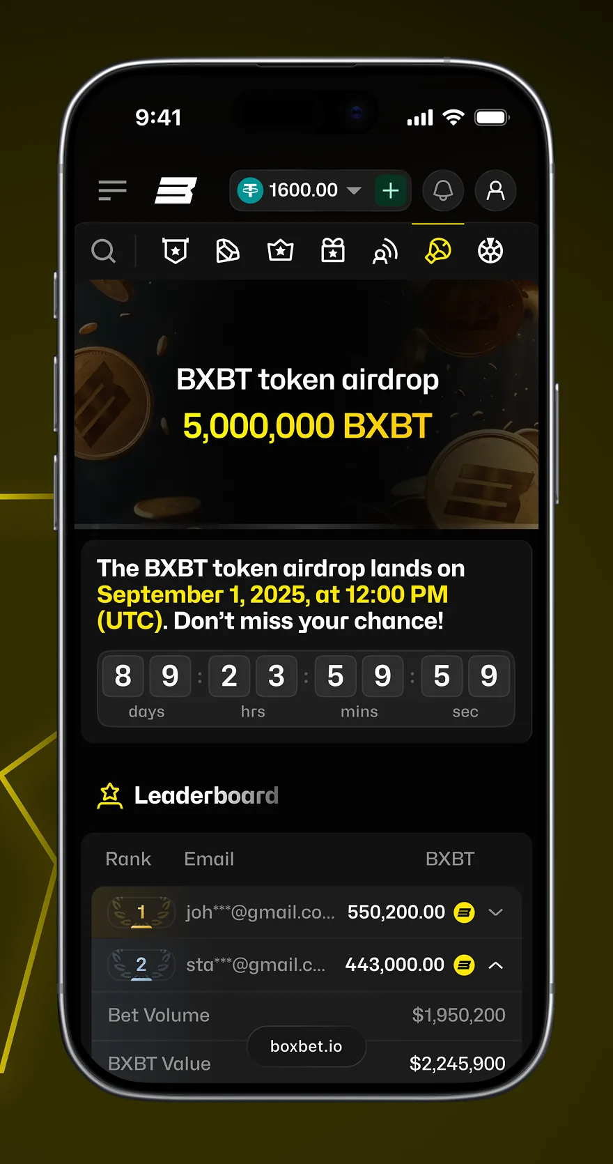 BoxBet dashboard token