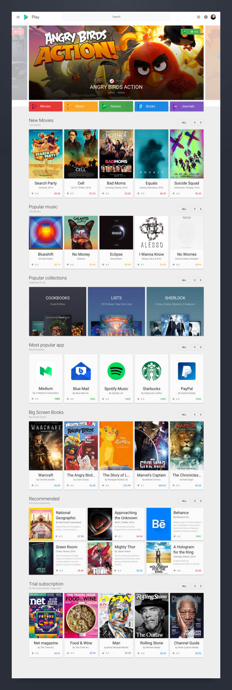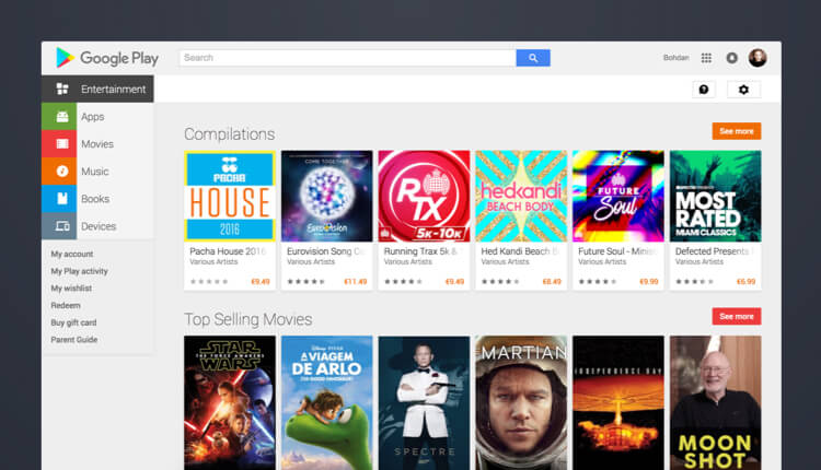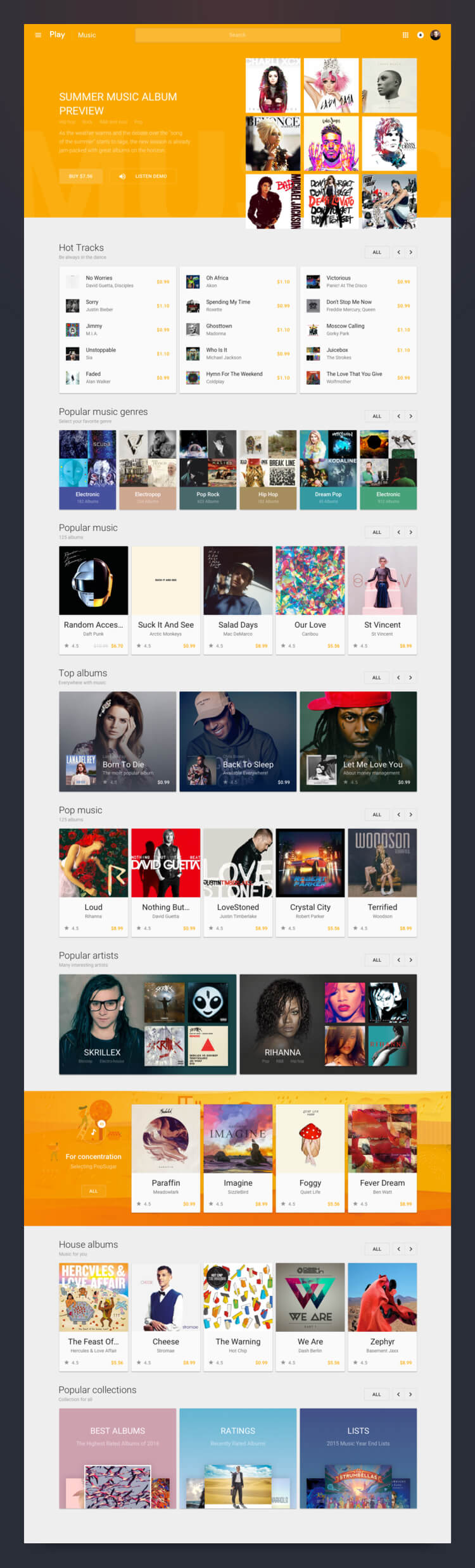 The music page is where you would find a wide variety of tracks for purchase made available by Google Play. Categories are based on several factors like genre, artists, popularity and collections, all displayed in an easily navigable layout.