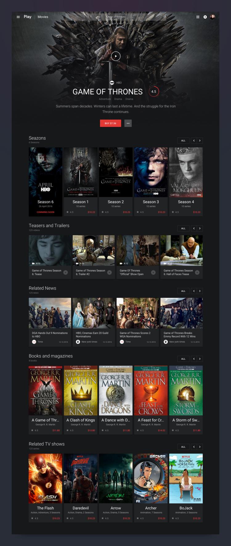 The new design of the TV series page ensures that you never miss out on any episode of your favourite show. The page provides the details, trailers and full videos of every episode of every season on any show with the related literature and news articles.