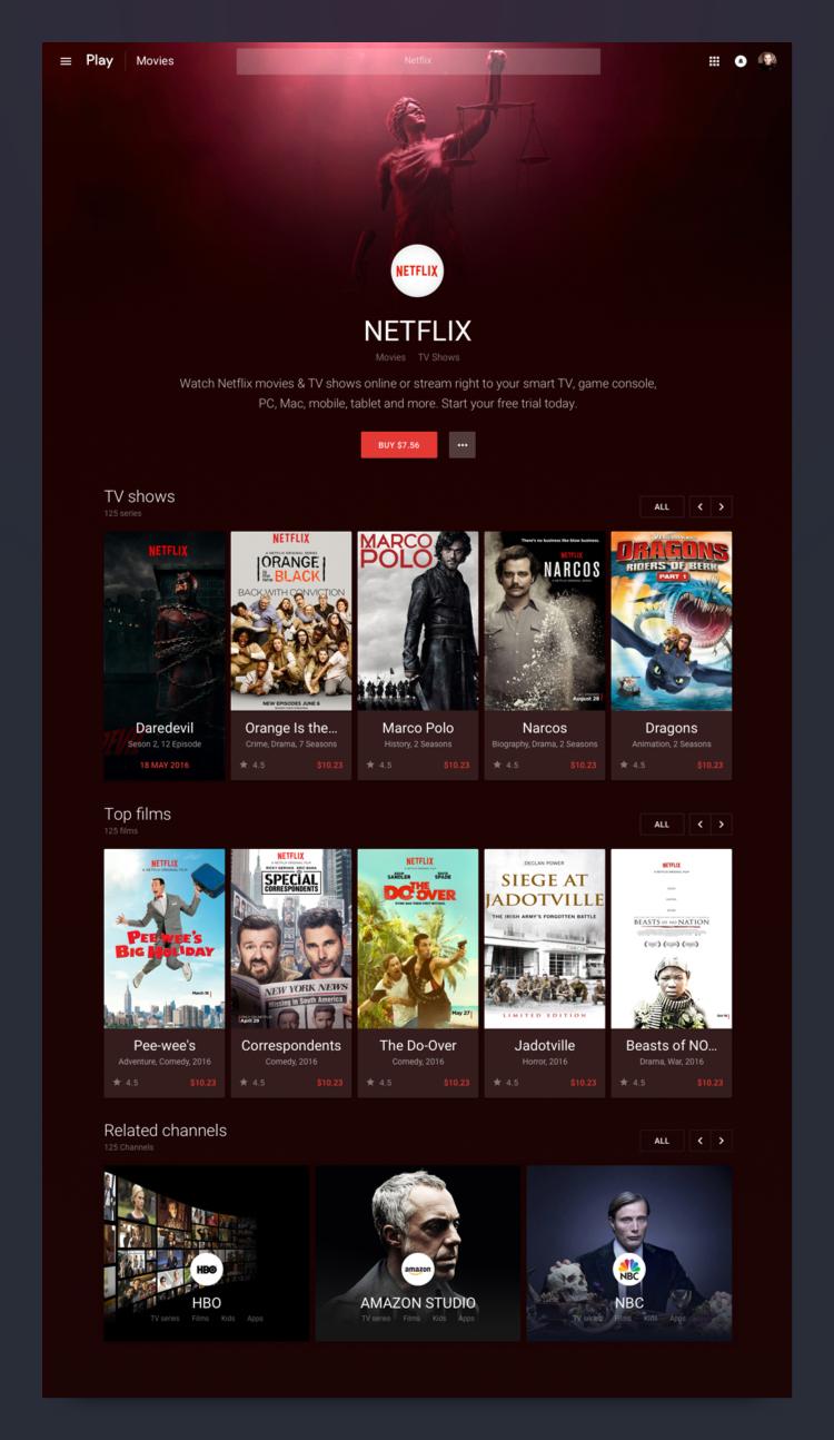 We wanted to create a system where you could keep up with your favourite TV channels on your device via Google Play. From Netflix to NBC, you can easily subscribe to any TV channel to access all its films and shows.