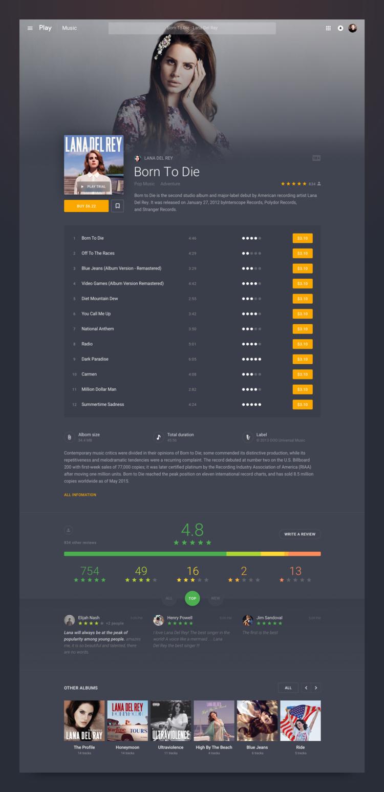 Here you can view all the relevant details pertaining to a particular album on the platform. Songs from the album are also outlined here and you can select your favourite tracks for purchase.