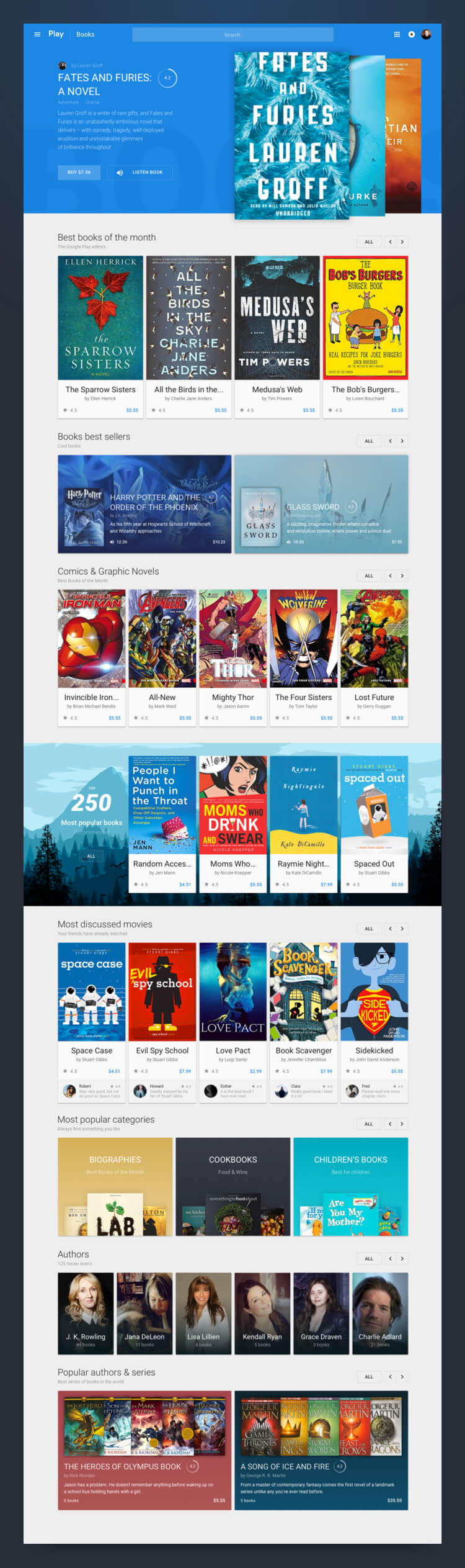 The revamped Google Play supports a wide assortment of books, from comics to novels. You can browse through the various categories under Best sellers, Authors, Popular books and more, to find what you enjoy.