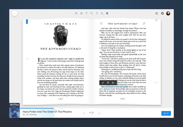 We designed a function that helps you keep up with your reading progress on any magazine you select. It comes with dynamic features that lets you do things like change text style and layout, search and leave annotations.