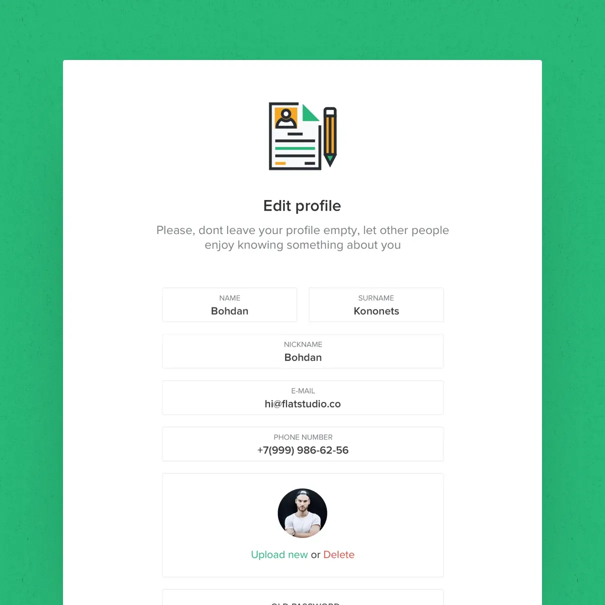 Header about section, like