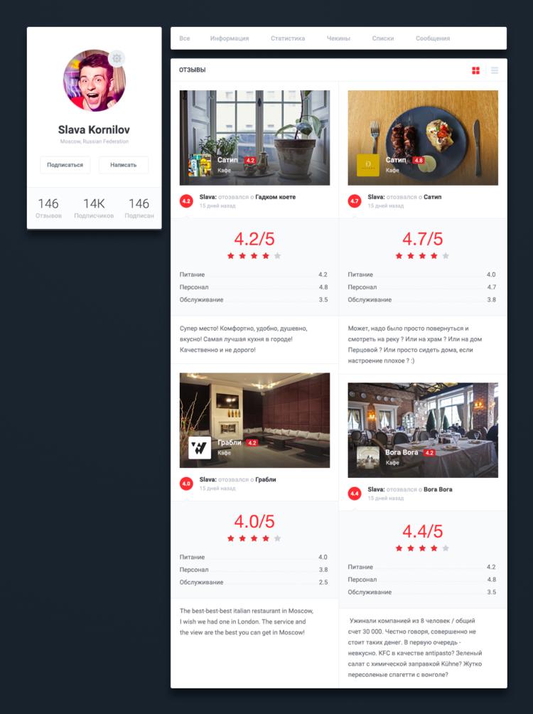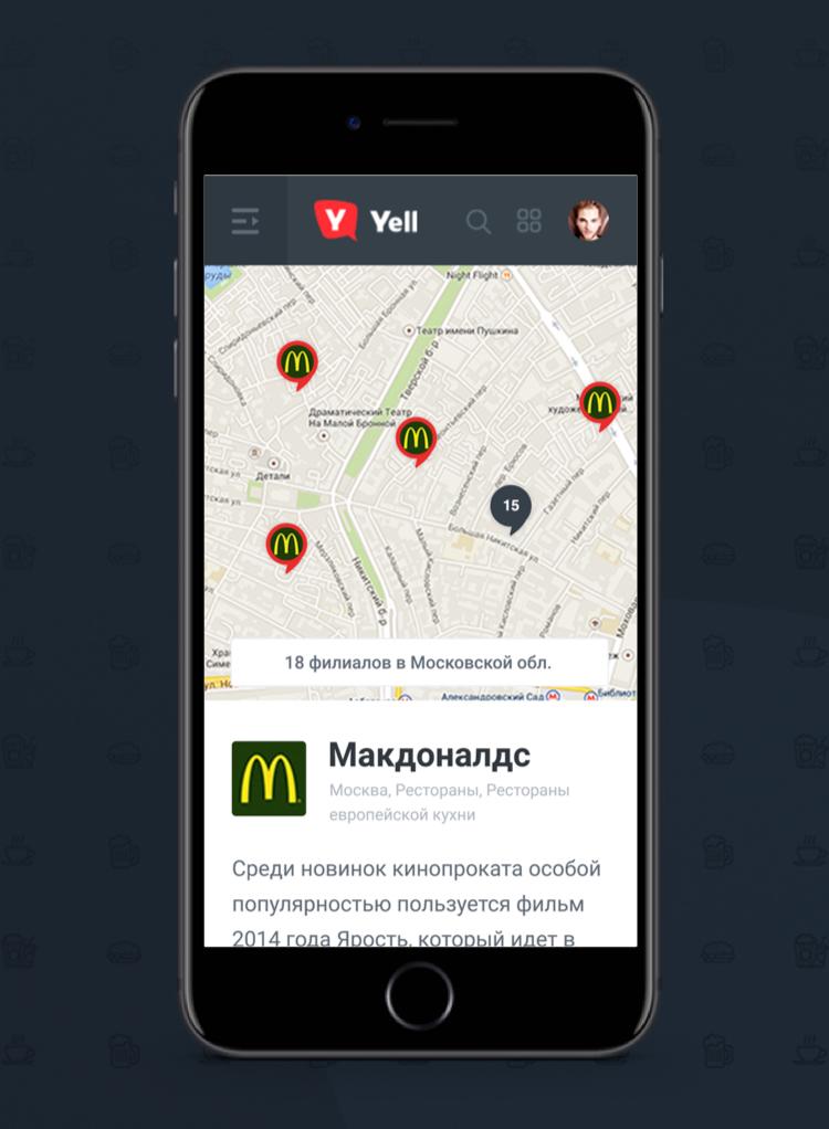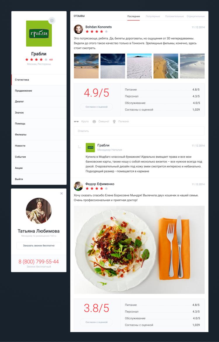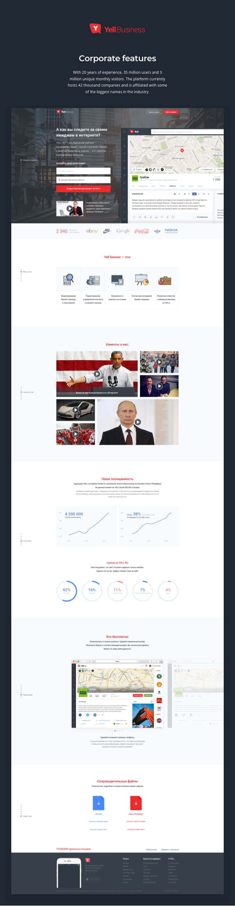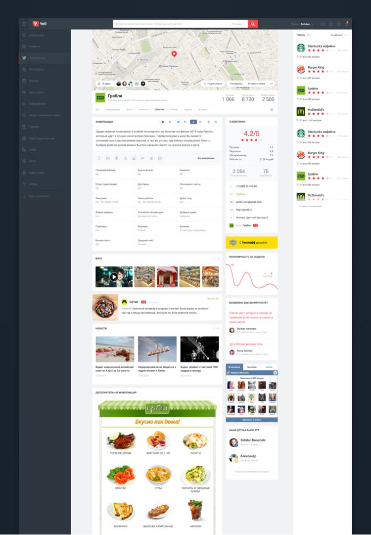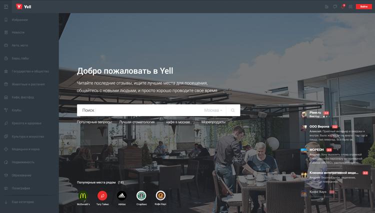 Yell.ru is a service of reviews and recommendations that helps people to search, find and choose the best companies, places and institutions. Yell collect daily a new feedbacks and update the information already available.
