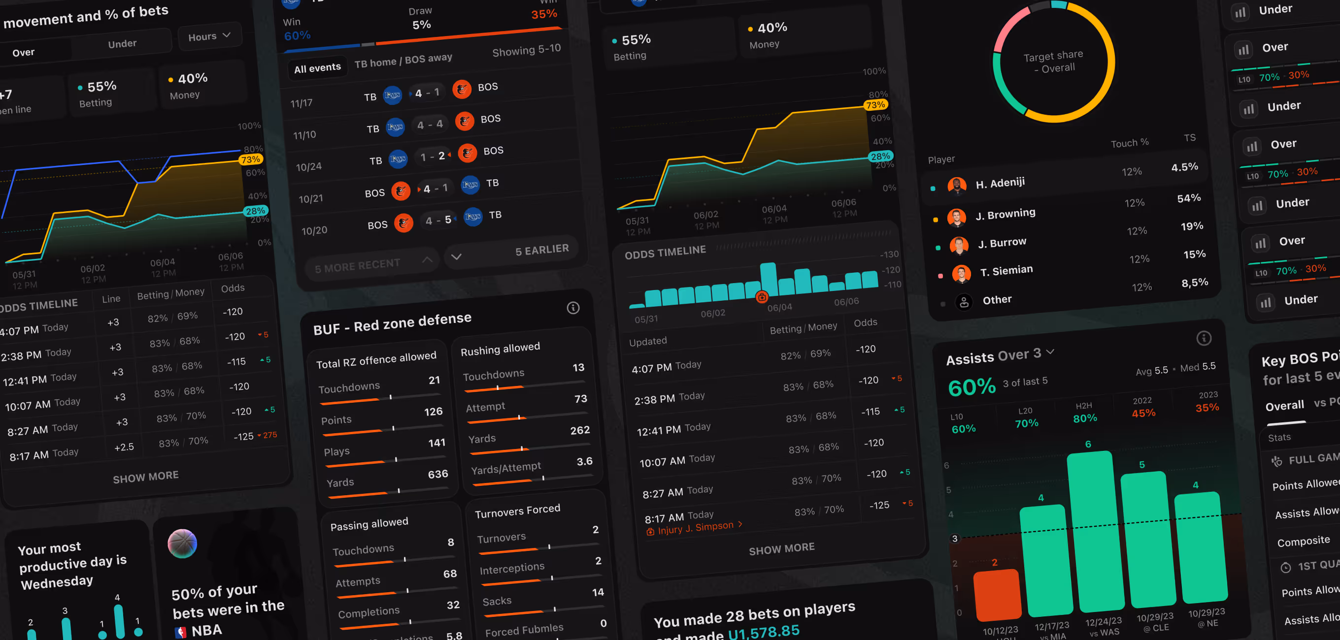 Middle bet → main screens